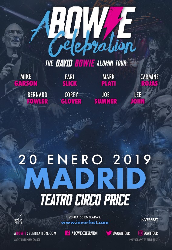 La banda original de David Bowie actuará en el Teatro Circo Price de Madrid el próximo 20 de enero para presentar A Bowie Celebration: The David Bowie Alumni Tour, y en el que interpretará algunas de las canciones más hermosas y representativas del cancionero del genial músico inglés. El concierto se enmarca dentro de Inverfest, el "festival de invierno de Madrid", que recoge diferentes "propuestas artísticas en diferentes espacios de la ciudad".