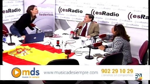 Federico comenta con las responsables de Moviepress la colección de las décadas de oro del pop español.