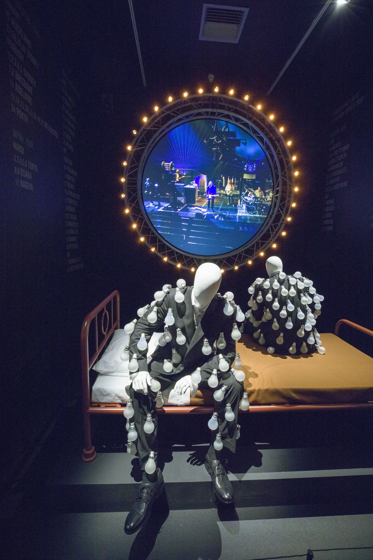 La exposición rinde tributo a estos logros con una reconstrucción especial del traje de bombillas que vestía un modelo en la fotografía de portada del disco Delicate Sound Of Thunder, de 1988, que fue tomada cerca de Madrid.
