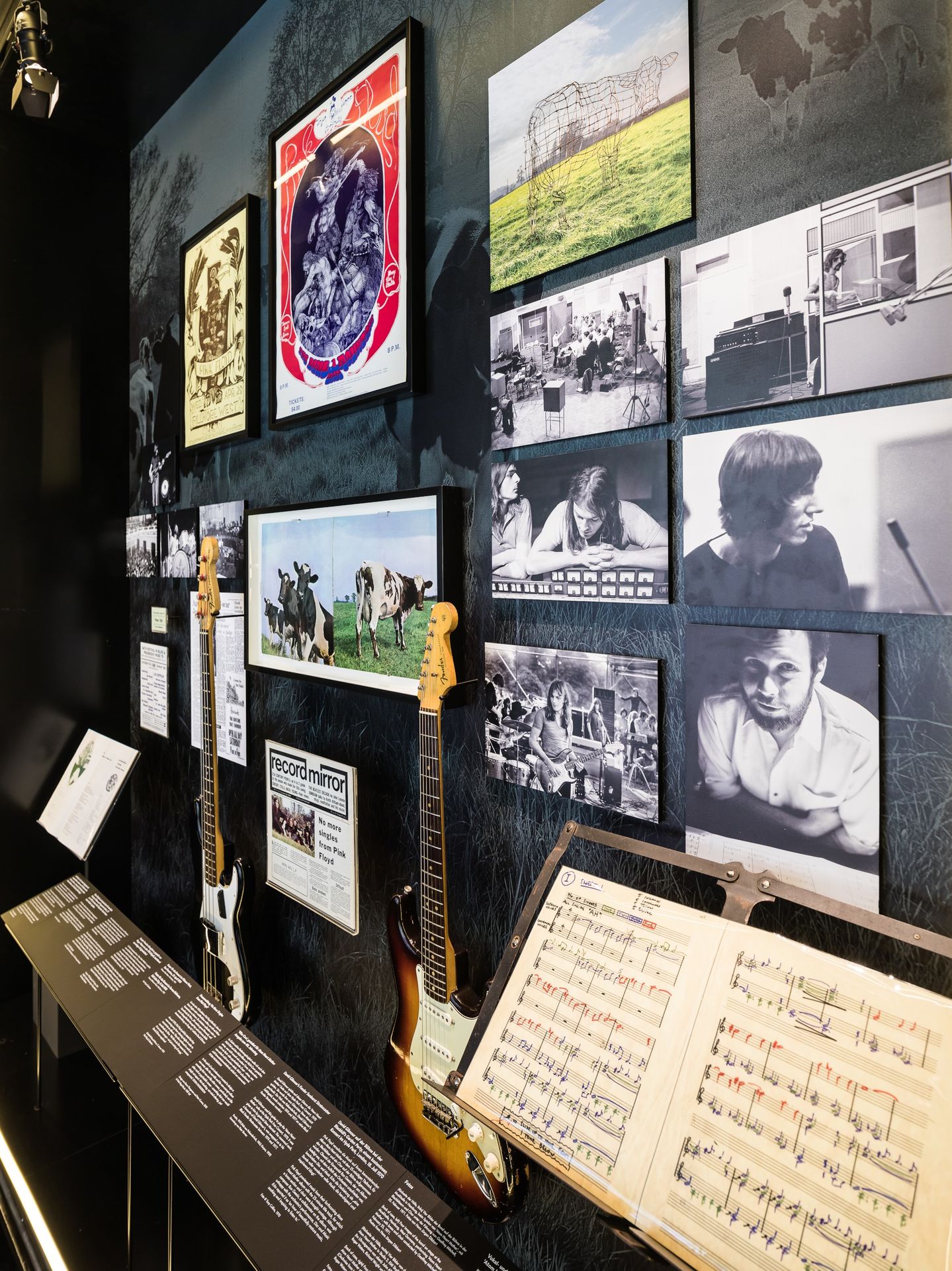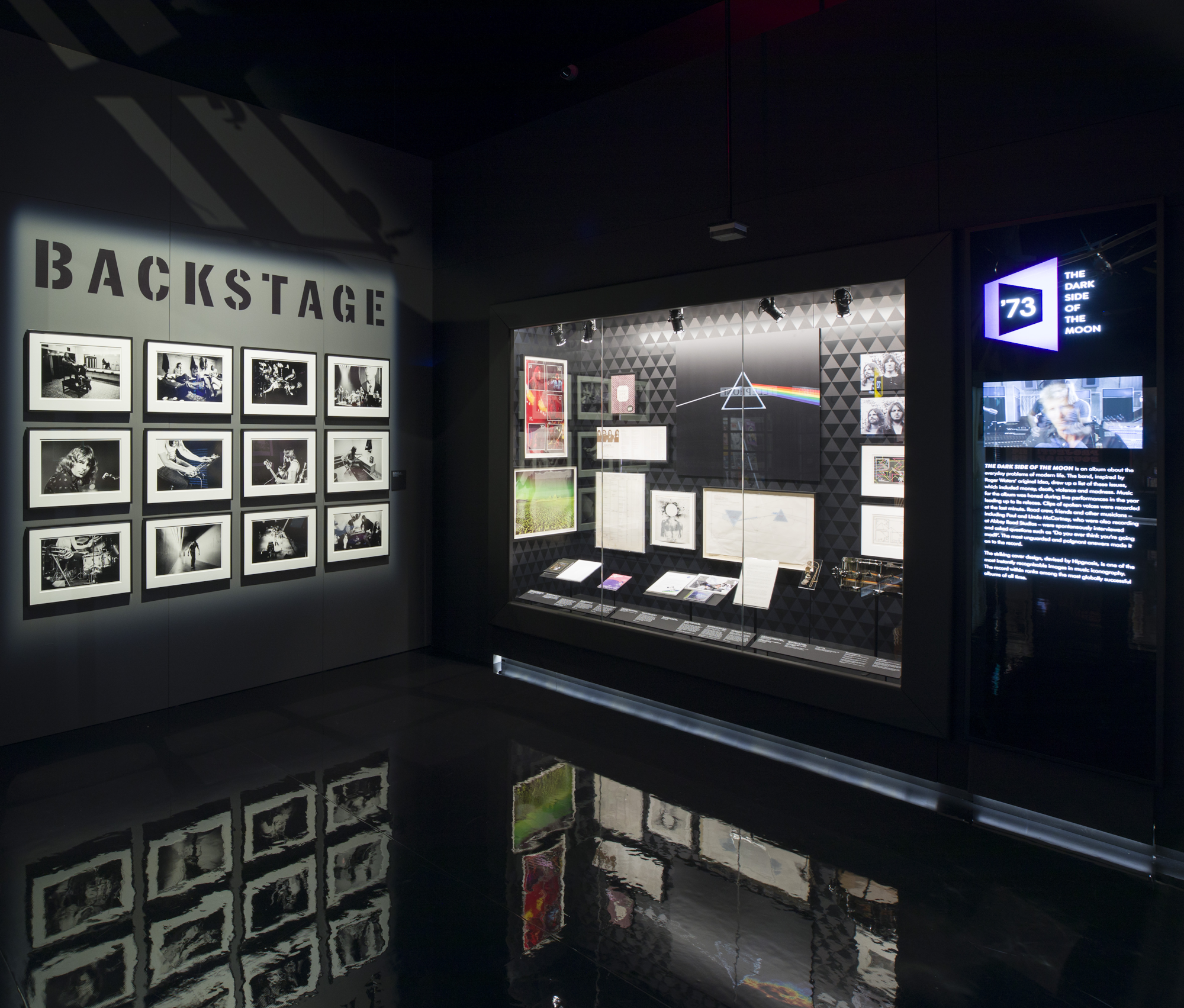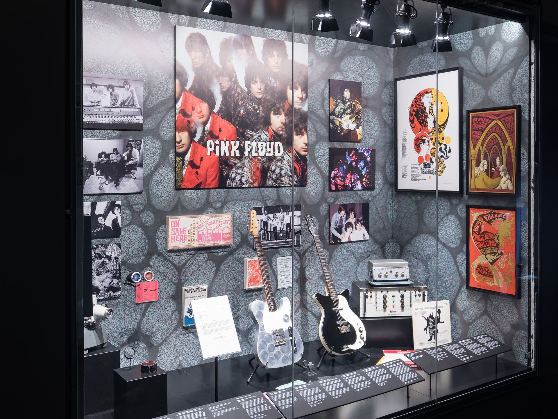 El discurrir de la exhibición, planteada en orden cronológico, está realzado en todo momento por la música y las palabras de los componentes presentes y pasados dePink Floyd: Syd Barrett, Roger Waters, Richard Wright, Nick Mason y David Gilmour.