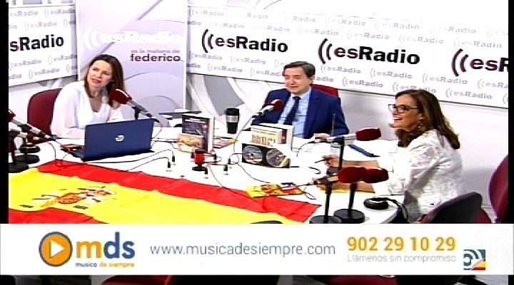 Federico comenta con las responsables de Movie Press la colección de Movie Press sobre himnos y marchas militares
