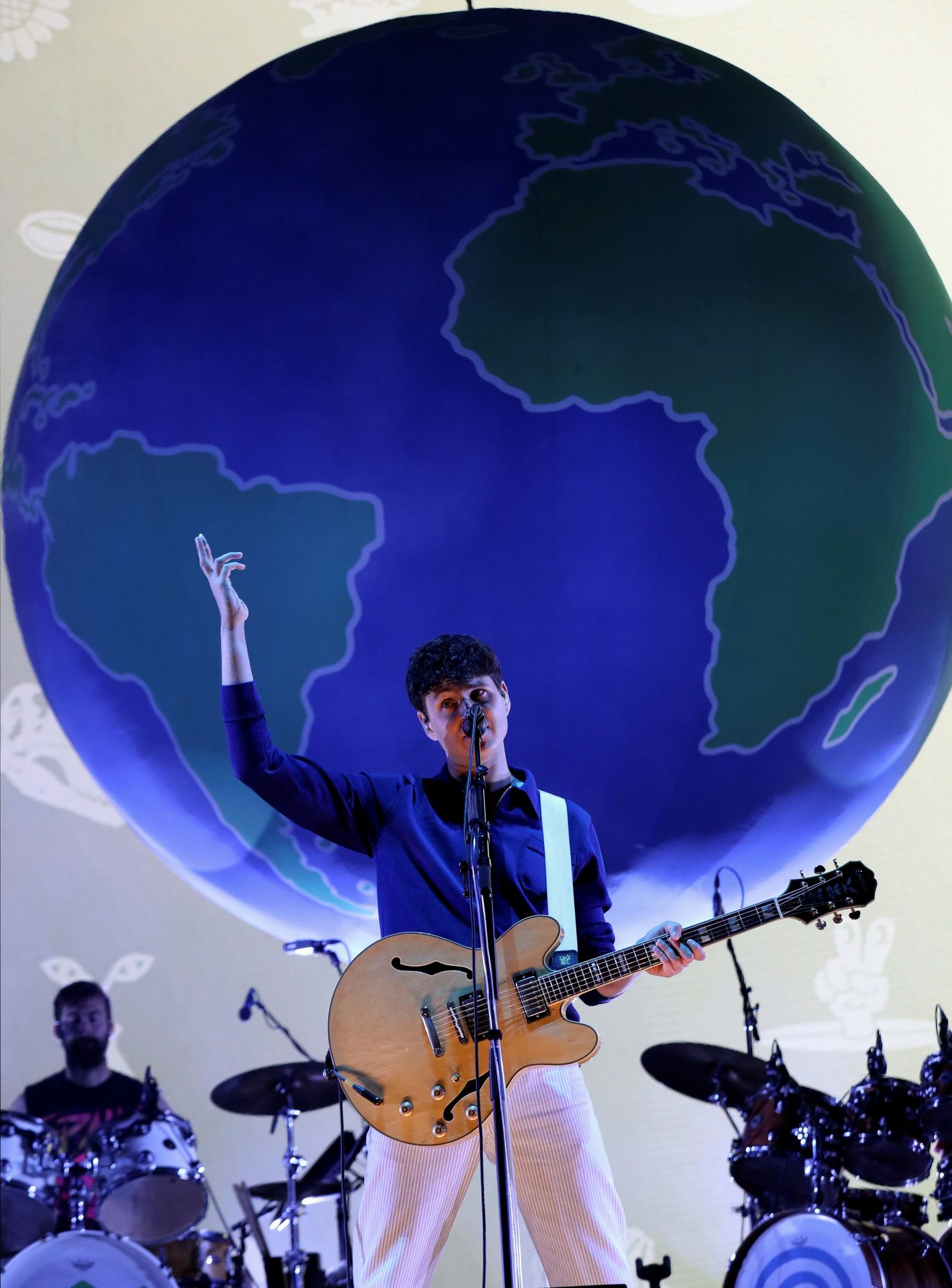 Paso a paso, con canciones como "Step", "This life", "Cap Cod Kwassa Kwassa" y "Unbelievers" los vampiros fueron enamorando a un público entregado que sin atender al reloj cantaba las canciones de los de New York en un espectáculo de luz y sonido coronados con una enorme bola del mundo que era la portada de su último disco de estudio Father of The Bride con el que se han hecho definitivamente mayores.
