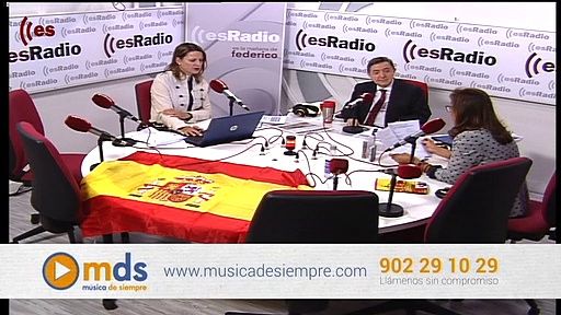 Federico comenta con Margarita Celada la colección de marchas militares de Movie Press.