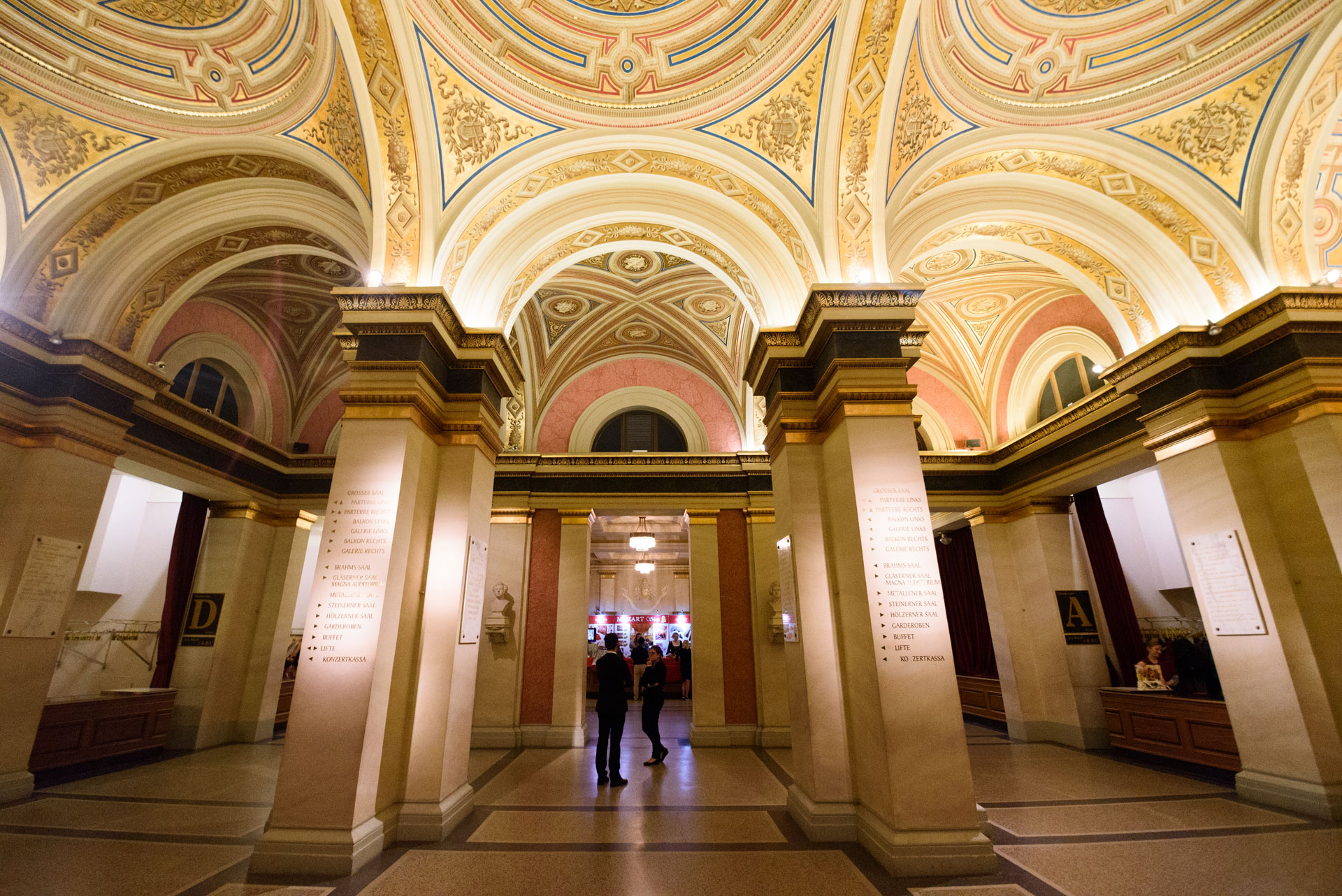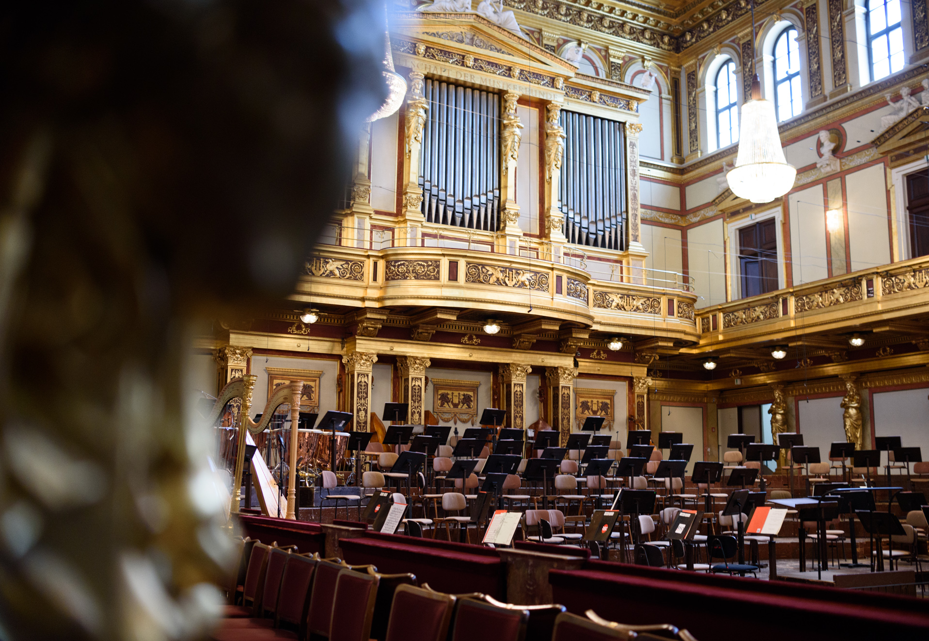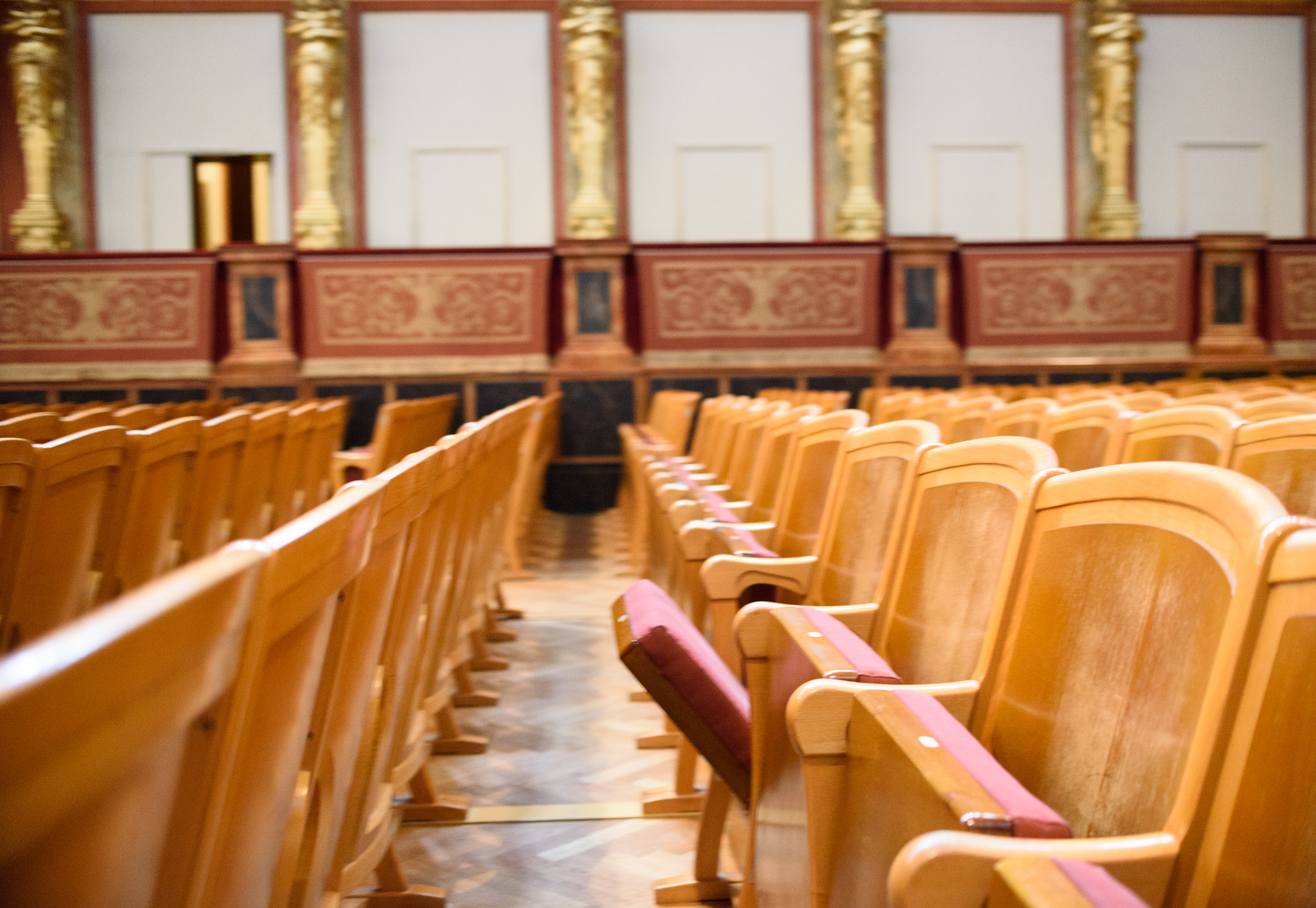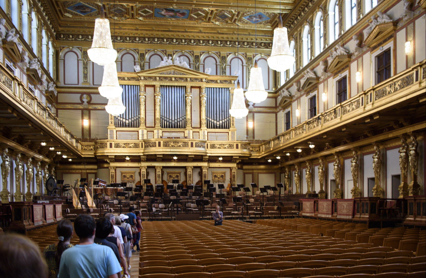 Este templo de la música contiene en su interior el corazón mismo de la música clásica: su famosa Sala Dorada o Goldener Saal. Con un diseño incomparable, además de su acústica, la sensación de que el sonido te envuelve es única en todo el mundo, incluso visitando la sala completamente vacía y sin sus brillantes músicos alimentando de las mejores composiciones nuestros oídos. Tiene 48 m de longitud, 19 m de anchura y 18 m de altura. Cuenta con 1.744 asientos y unas 300 plazas de pie. Gracias a su forma rectangular, el recubrimiento de madera, el espacio hueco bajo el suelo de madera, que actúa como caja de resonancia, su falso techo de madera, el sonido pasa de ser excepcional a sublime.