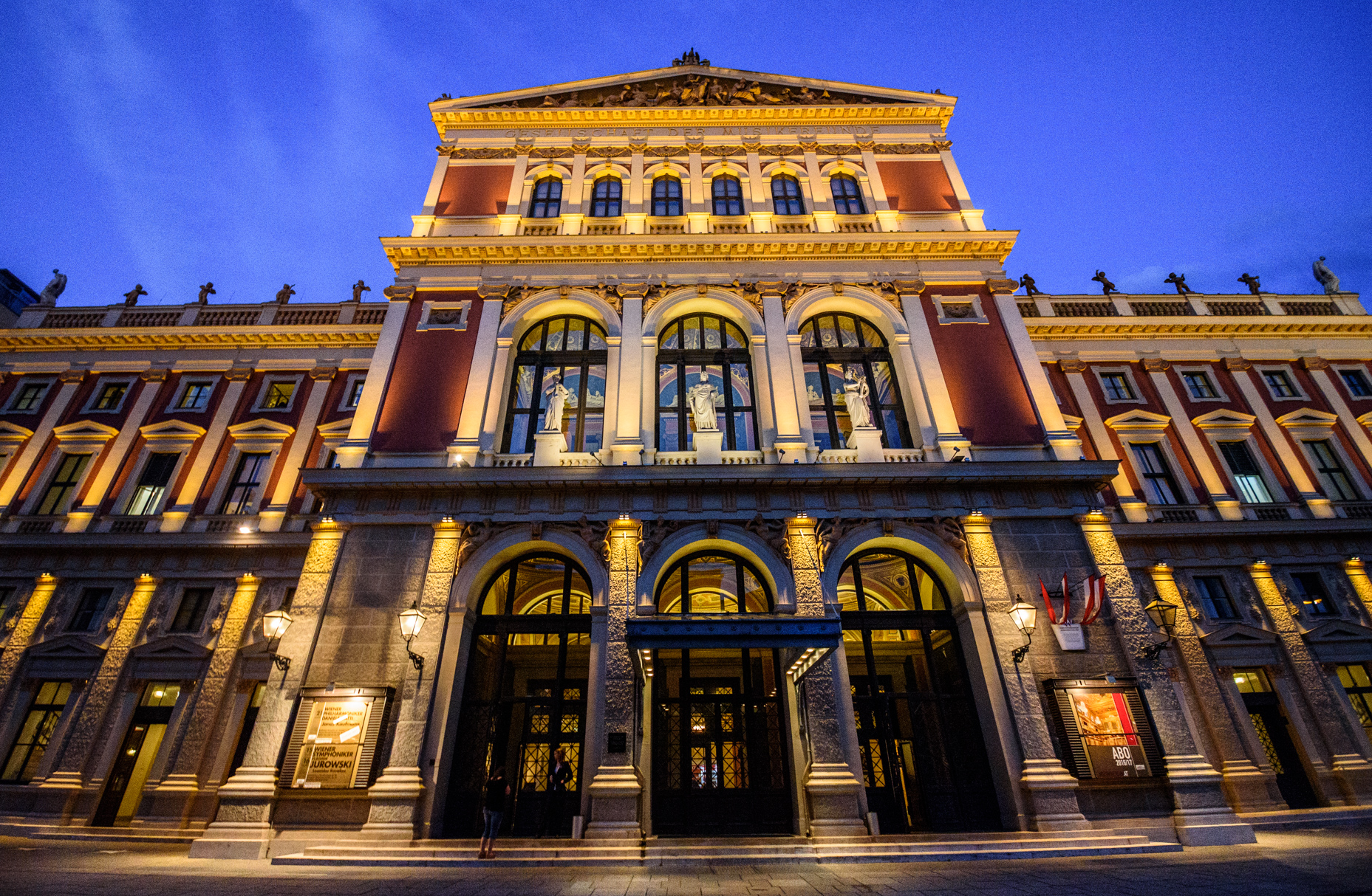 El Musikverein es el centro más afamado del Clasicismo y de los amantes de la música clásica y la elegancia. Presenciar un concierto en este lugar significa conocer Viena, la ciudad de la música, en todo su esplendor. El edificio está situado en Karlsplatz, a poca distancia del bulevar y recuerda por su apariencia exterior a un templo, construido en 1870 por Theophil Hansen con un estilo histórico, con columnas.
