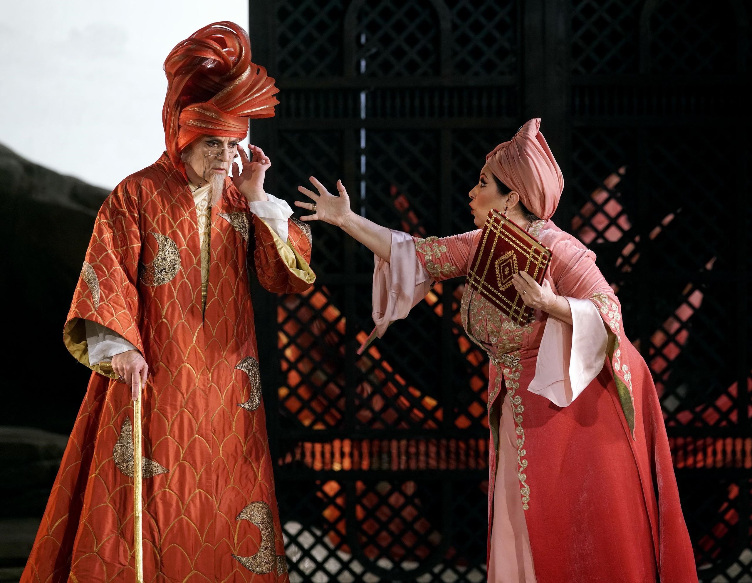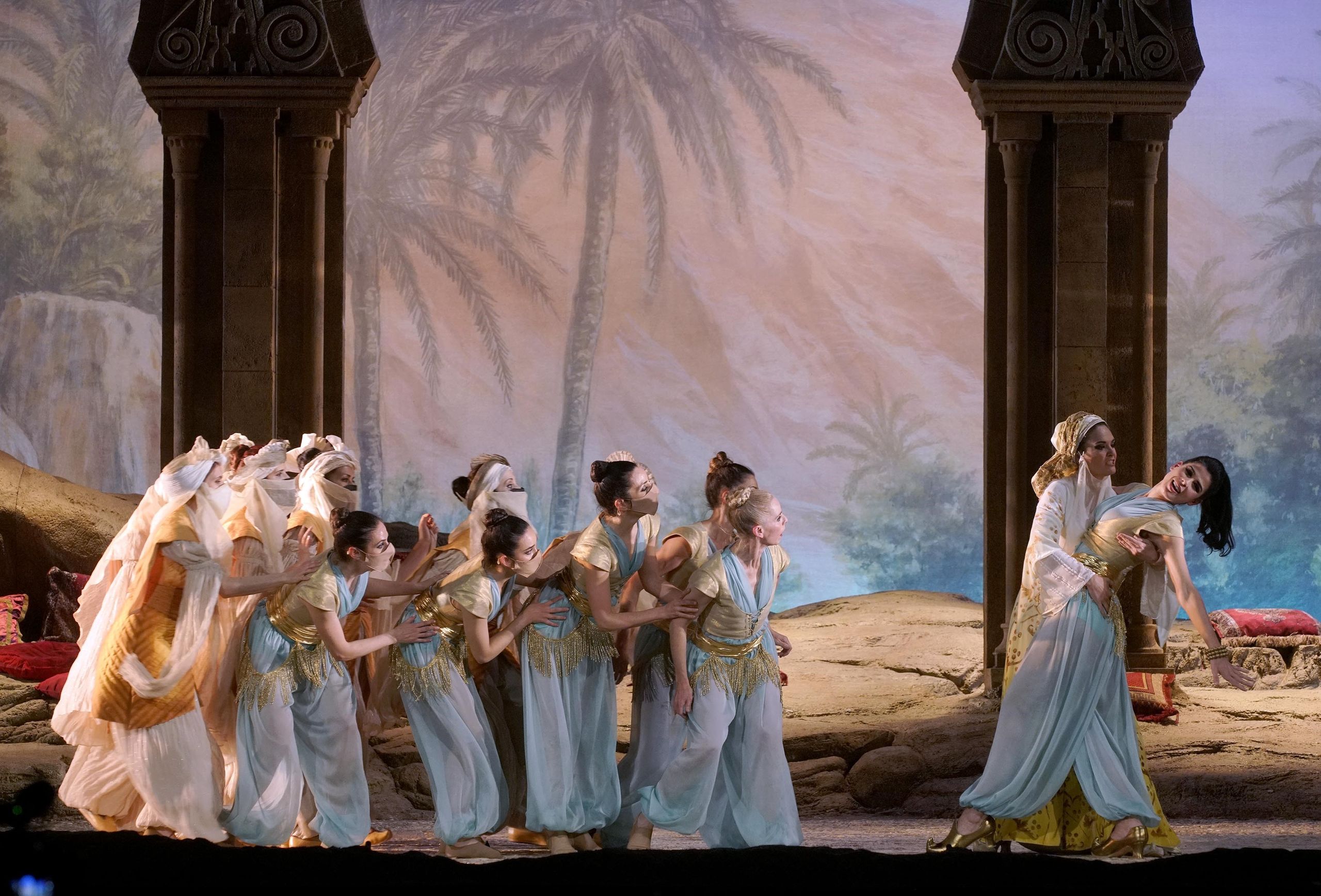 Por suerte, hasta llegar a ese momento el respetable puede disfrutar de la escenografía, de las más bellas y evocadoras de las últimas temporadas o de personajes secundarios con gancho, como el visir sordo a demanda encarnado por Viana, la madre del sultán -con un TOC de limpieza único en el género- interpretada por Amelia Font o el príncipe Jacinto, el clásico personaje cómico homosexual pero reelaborado para desafiar convenciones, un genial trabajo de Gerardo López. Al lado de estos, y a pesar de los buenos momentos de la partitura, como el pegadizo pasodoble "Por un gran querer" o la conocida "Danza del fuego", con una hipnótica puesta en escena, los intérpretes principales no se lucen tanto. No obstante, Vanessa Goikoetxea y Carol García como Benamor y el sultán presumen de voces cristalinas, así como Damián del Castillo asombra con su rotunda presencia. En definitiva, un pastiche oriental con elementos de gran atractivo: si bien el conjunto no resulta redondo, es mejor relativizar y tragarnos la píldora con que argumenta Viana: "Un sueño feliz es la mejor medicina para los tiempos de pesadilla que estamos viviendo".