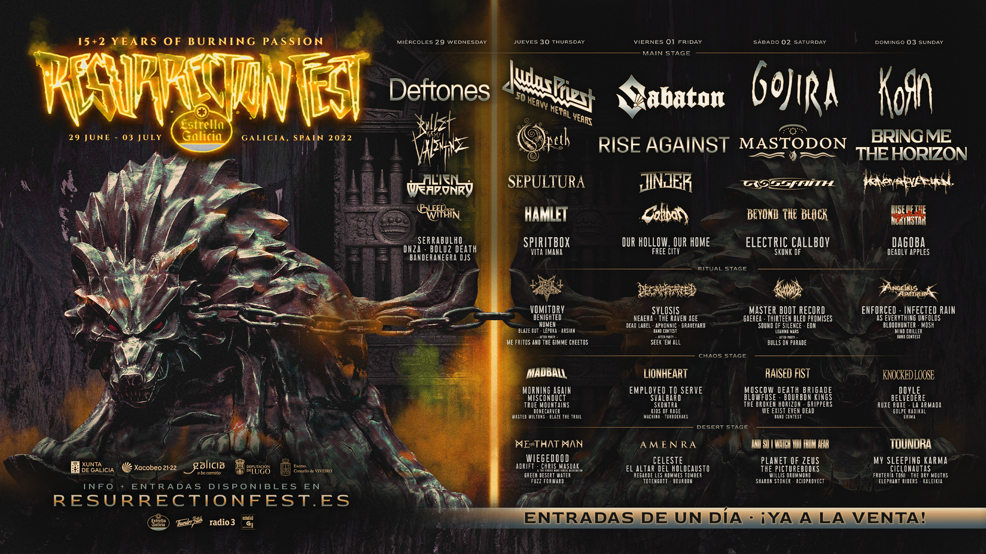 Del 29 de junio al 3 de julio, hasta Viveiro (Lugo), viajarán artistas como Deftone, Judas Priest, Gojira, Korn, Sabaton, Sepultura y Hamlet. Más información.