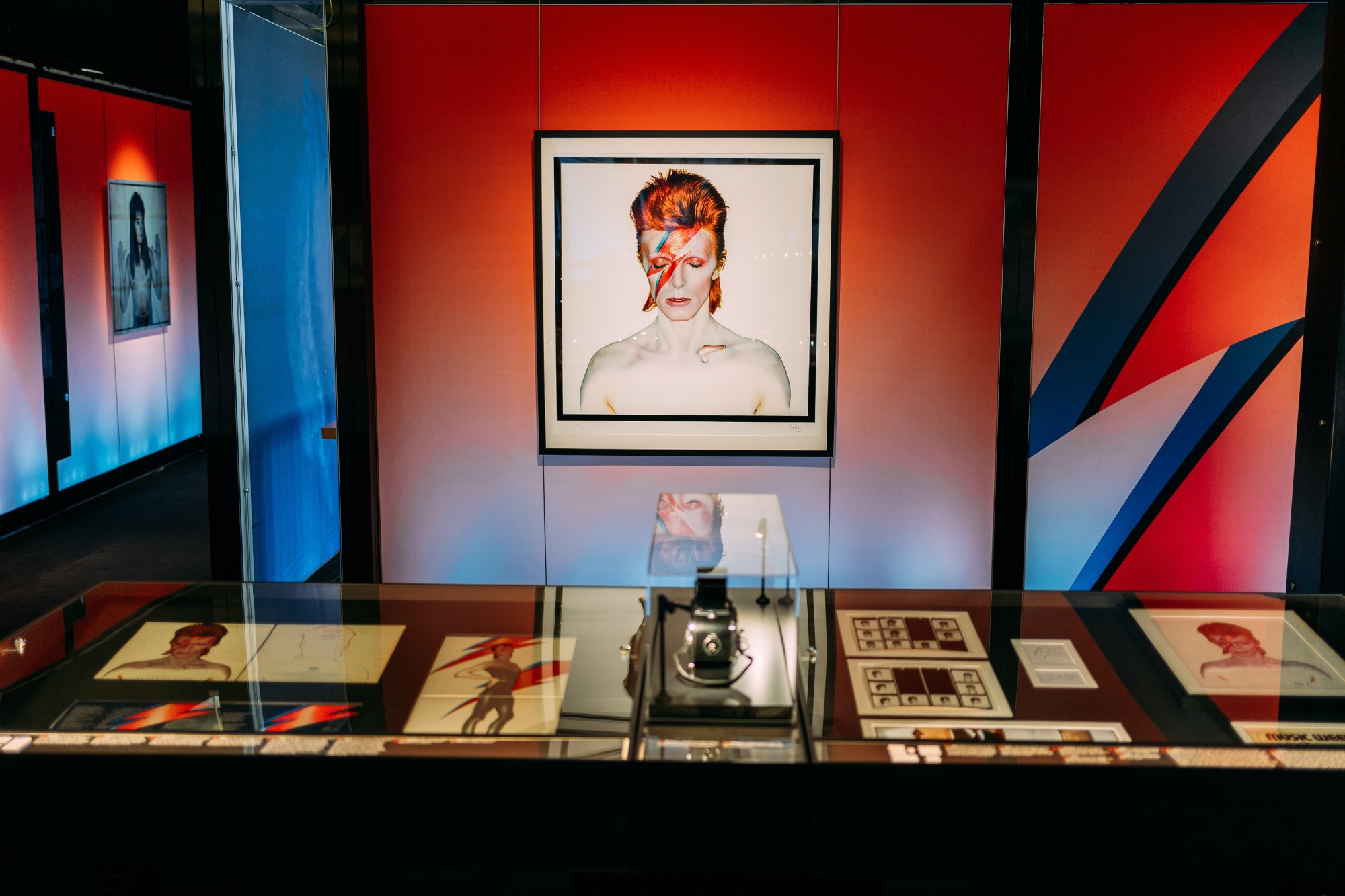 La imagen del rayo se exhibe junto a 160 objetos originales de la colección del Archivo Duffy en las que se muestran la relación entre el artista y el fotógrafo a través de objetos que se utilizaron en las cinco sesiones fotográficas que ambos artistas llevaron a cabo entre 1972 y 1980. Se incluye algún videoclip, pero no se centra en la música, por lo que, es una exposición más bien dirigida a los aficionados a la fotografía y el diseño gráfico, además de para los acérrimos fans de Bowie.