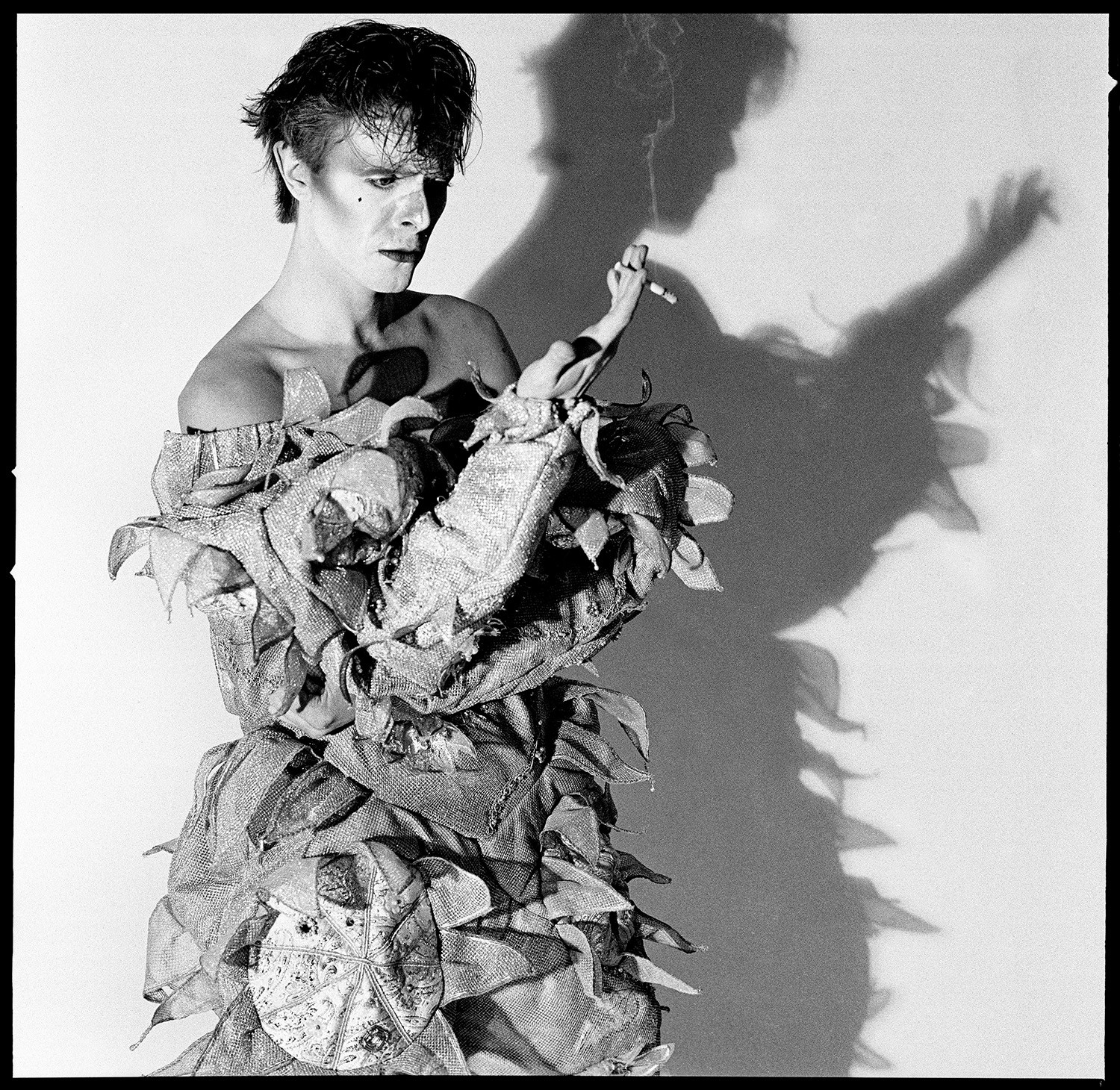 Curiosamente, el nombre original de ese álbum iba a ser A lad insane (Un tipo loco) pero Duffy entendió Aladdin sane (Aladdin cuerdo) y así se quedó. El maquillador, Richard Pierre Laroche, puso un pequeño flash en la cara de Bowie. Duffy lo retiró y dibujó en su lugar un gran flash con pintalabios. La impresión original Aladdin Sane Dye Transfer (la única copia original de la imagen del álbum) forma parte de la exposición Bowie taken by Duffy, que se estrena en Madrid.