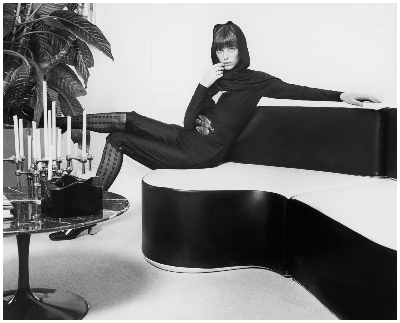 David Bailey era el fotógrafo oficial del Vogue en inglés en los años fabulosos del Londres prehippie. Llegó a publicar 800 paginas en un año. En la foto, Jean Birkin posa para Ungaro. Foto: Jeanloup Sieff, 1970.