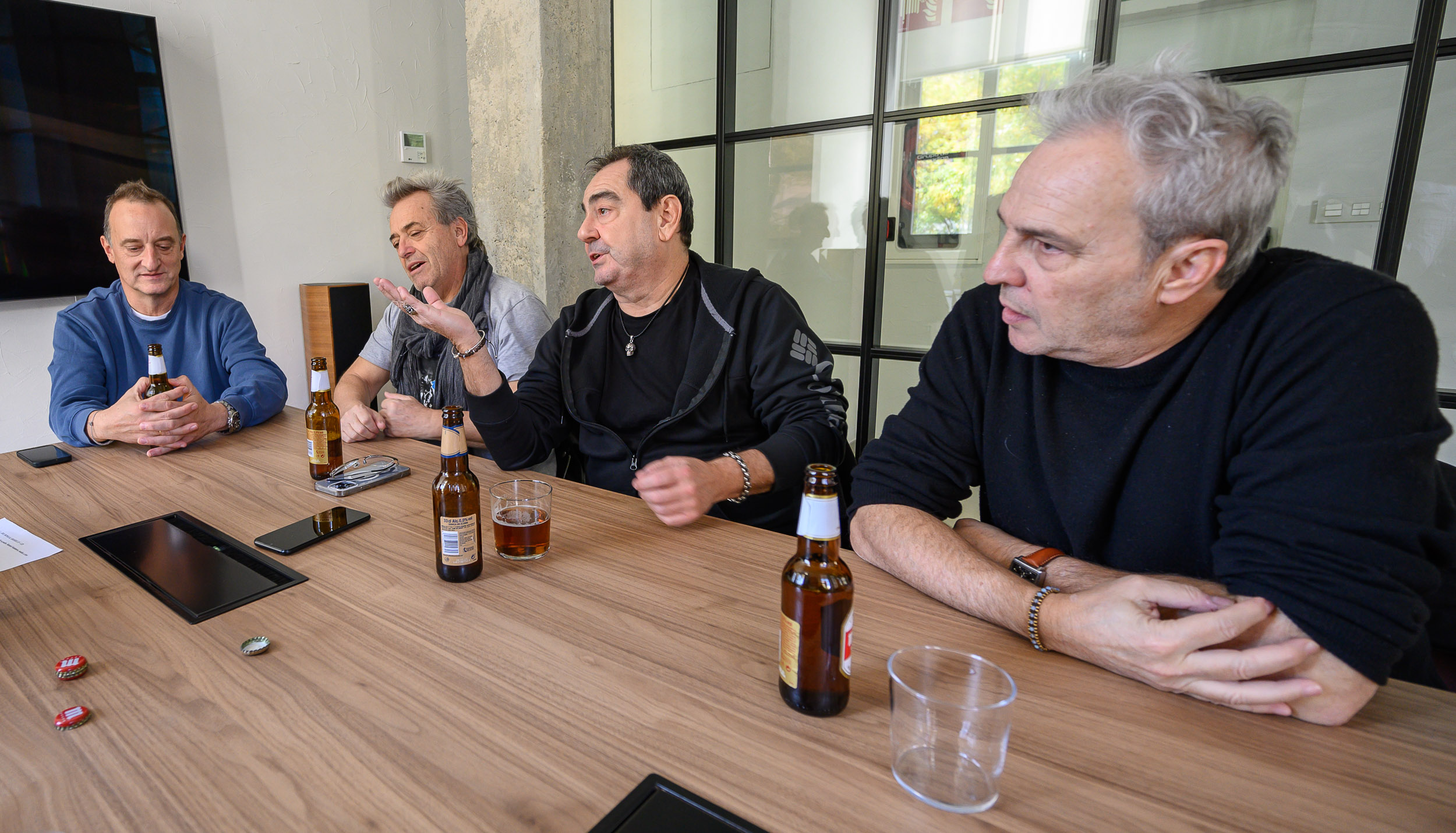 Los Hombres G celebran su cuadragésimo aniversario publicando un recopilatorio doble, Del rosa al amarillo, título compartido con el de una película de Manuel Summers de 1963. Conforman David Summers, Rafa Gutiérrez, Dani Mezquita y Javi Molina un milagro longevo, musical y extraño –teniendo en cuenta, sobre todo, que vivimos en la edad de la prisa, de lo efímero, de la obsolescencia programada– a base de amistad y canciones bonitas, divertidas, sencillas y, precisamente por esto último, difíciles. Sin ellos, perdonen el tópico, no se puede entender la historia de la música popular española del último medio siglo. Han sobrevivido a la zancadilla del envidioso, han ligado a punta de pala con febriles chicas cocodrilo, han cantado "Voy a pasármelo bien", "Lo noto" o "Marta tiene un marcapasos" en el Rock-Ola y en el Madison Square Garden, han acabado rindiendo a la crítica. Y ahí siguen: empezando, componiendo, llenando, triunfando. Humildes, currantes, golfos y responsables. LD les entrevista en las nuevas instalaciones de Warner Music Spain, en un edificio que, no ha tanto, fue parte de la vieja Estación del Norte.