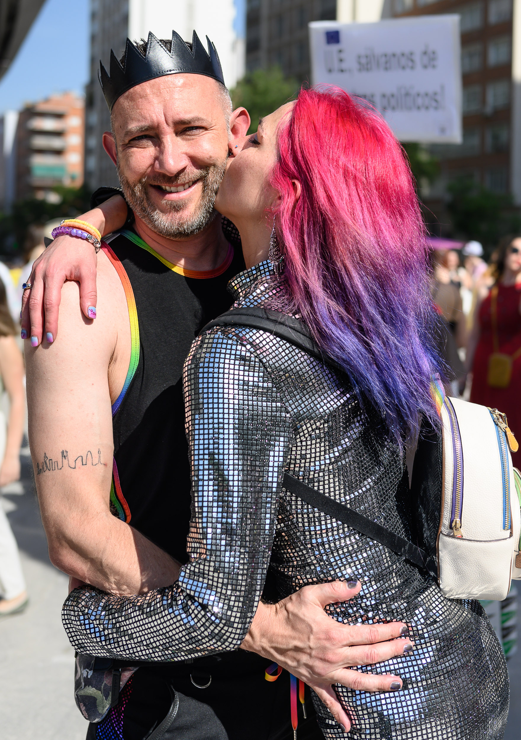 Una pareja llena de amor, la mujer inspira su vestido en la canción Mirrorball mientras él probablemente se ha inspirado en King of my heart.