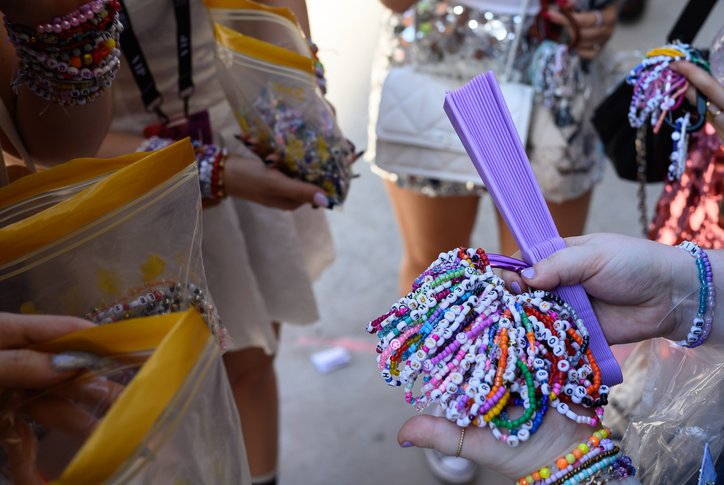Las pulseras artesanales que elaboran las fans son una parte importante de la liturgia previa al concierto.
