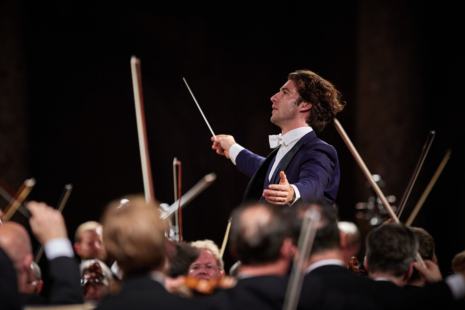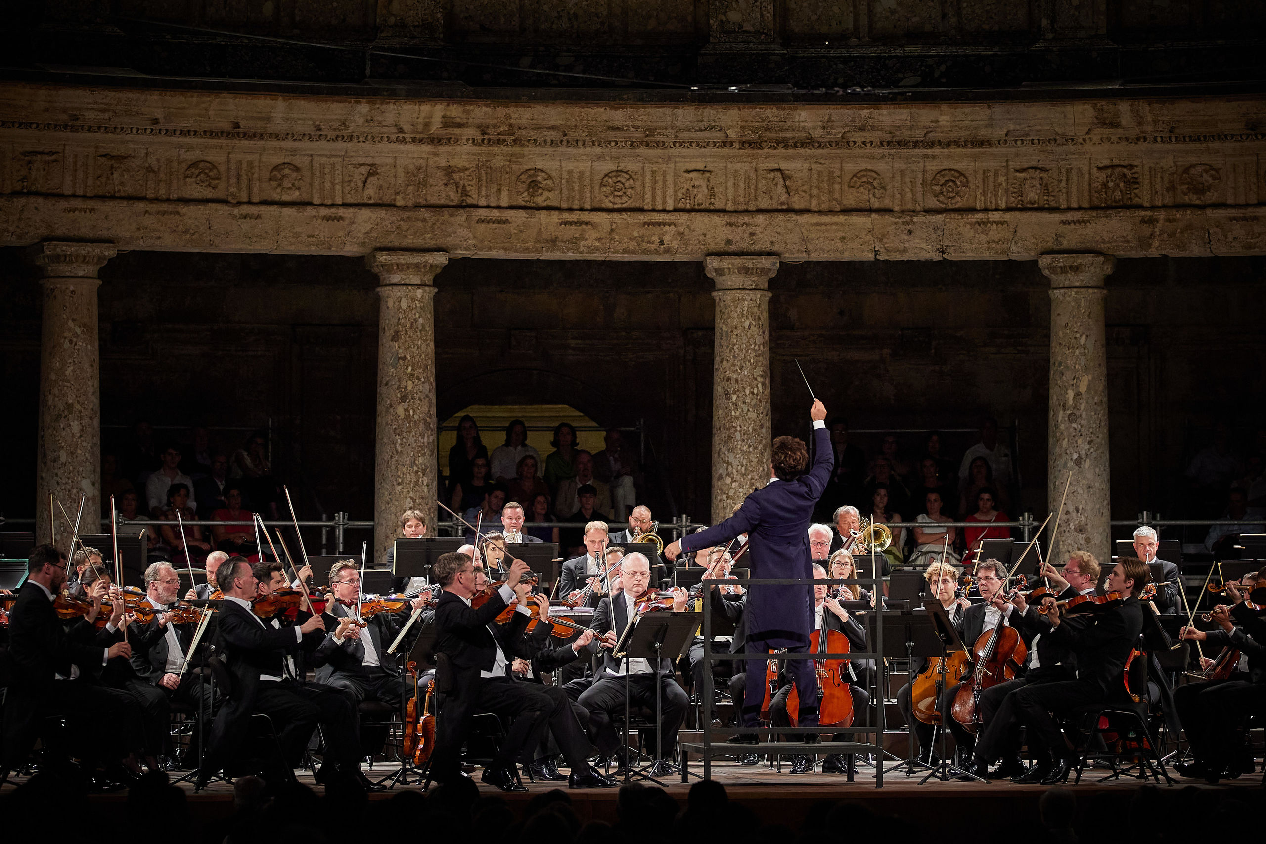 El concierto de la Filarmónica de Viena constituía en el ecuador del Festival de Música de Granada su cenit. Era una de las grandes orquestas mundiales que no había participado todavía en el patio del Palacio de Carlos V y Antonio Moral, el director del Festival, ha conseguido en su último año como programador regalar a Granada una experiencia musical superior a un beef entre Taylor Swift y los Foo Fighter en el Estadio de los Cármenes. Es la primera vez que veo instalada una grada suplementaria para acoger a más espectadores tras la orquesta. Lleno hasta el escudo de Carlos I de España y Carlos V del Sacro Imperio Romano Germánico, con los precios más altos de todos los conciertos, se percibía la expectación de las grandes noches bajo el firmamento granadino ante la llegada de las estrellas, tan admiradas por su excelencia musical como famosas por su show navideño.
