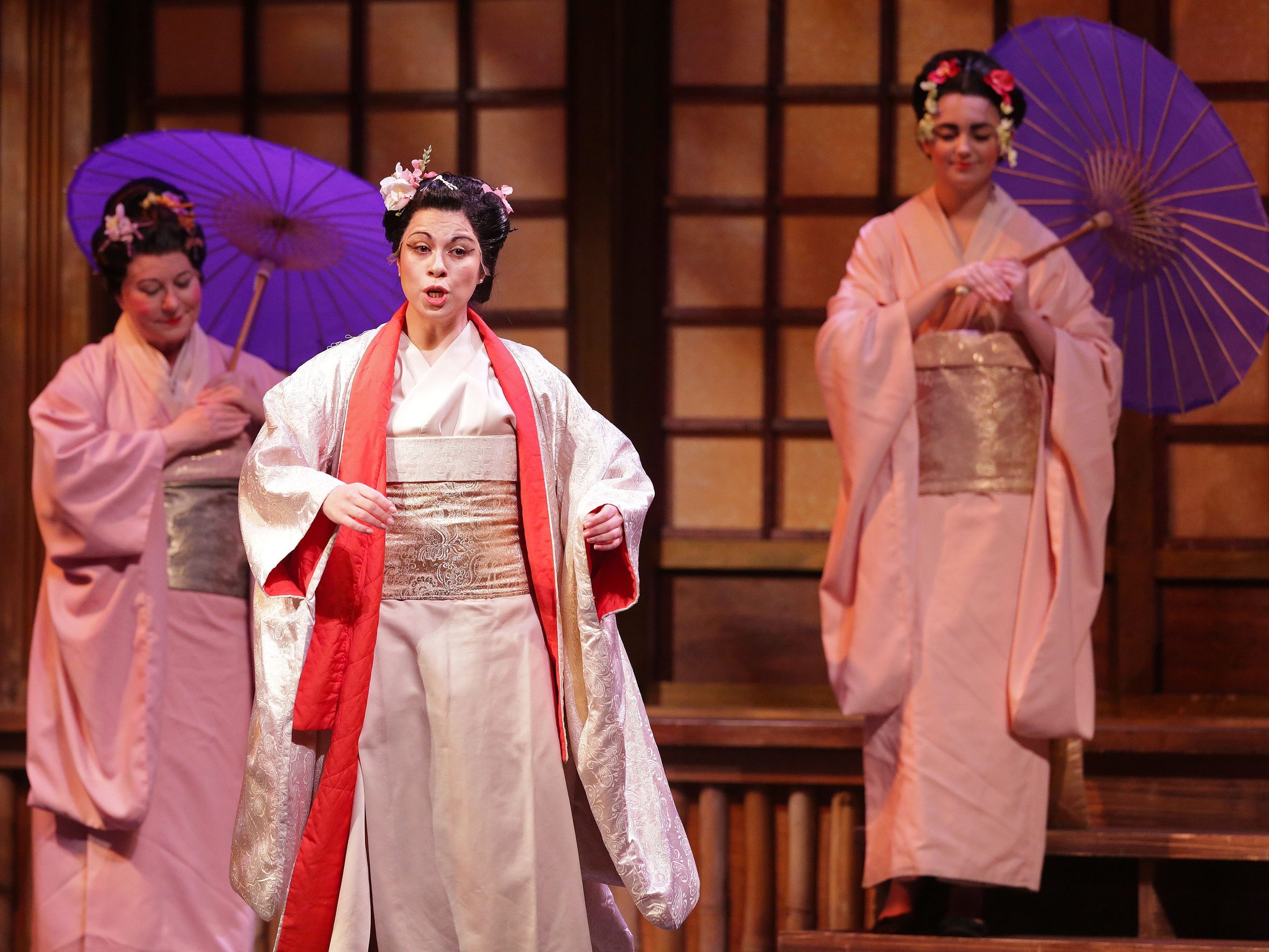El libreto fue escrito por Giuseppe Giacosa y Luigi Illica, colaboradores habituales de Puccini en obras como Tosca y La Bohème, y cuenta la historia del matrimonio de conveniencia entre Pinkerton, un teniente estadounidense, y Butterfly, una chica japonesa de 15 años, que se trasladan a Nagasaki a vivir juntos. Sin embargo, Pinkerton tiene decidido dejar a Butterfly cuando encuentre una esposa americana. Por otro lado, el tío de Butterfly le reprocha a la joven que se haya casado con un americano y haber abandonado la religión de sus antepasados.