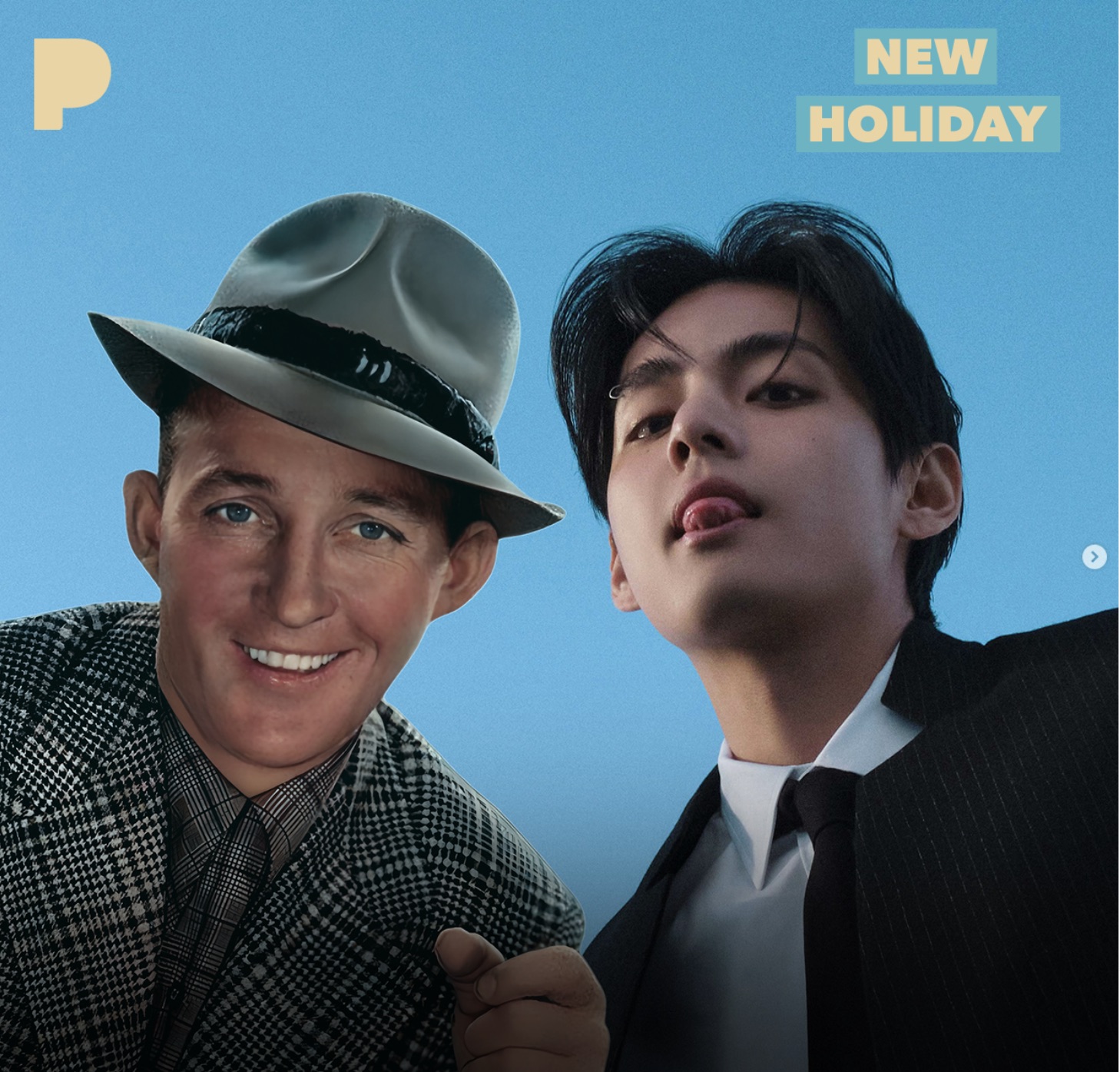 La noticia de la nueva versión de "White Christmas" fue revelada a través de las redes sociales oficiales de Bing Crosby, donde se destacó el talento y la admiración de V por el icónico cantante. En la portada del sencillo aparecen juntos una ilustración de Crosby y una imagen del perro de V, Yeontan.