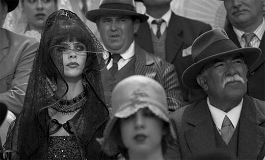 Una historia, según su director, concebida para ser proyectada en teatros y con la música en directo de una orquesta. Anoche, algunos tuvimos el privilegio (muchas gracias Laure) de asistir al único pase del film, tal y como expresaba Berger, en el Teatro de la Zarzuela (como hicieron en el Gran Teatre del Liceu el pasado 26 de Septiembre). Hace pocos días observamos el efusivo recibimiento que tuvo la película en el Festival de San Sebastián, y tras disfrutar de ella, no nos sorprende. Con un guion adaptado de la historia de los hermanos Grimm, Berger nos muestra de una manera personal y casi mágica, la historia de Carmen (Macarena García). Hija de un famoso torero (Daniel Giménez Cacho) y una cantante de flamenco (Inma Cuesta), que pierde la vida al dar a luz a su única hija. Su nueva esposa, la malvada madrastra (Maribel Verdú), le hará la vida imposible a Carmen, y tendrá que sobrevivir gracias a la ayuda de una “troupe” de enanos toreros, en la Andalucía de los años 20.