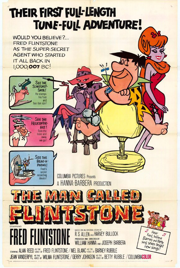 Los Picapiedra tuvieron varios largometrajes a lo largo de su historia. El primero fue El Superagente Picapiedra (1966), siguiendo la moda de James Bond, pero en el año 1.000.007 (AC). Aquí, Pedro Picapiedra es un agente secreto enviado a París para destruir un peligroso misil. Los inventos más ingeniosos son el sombrero helicóptero, el zapato tirachinas y la grabadora-tocata "Bleak-A-Phone". (Ver vídeo de la cabecera de "The Man Called Flintstone")