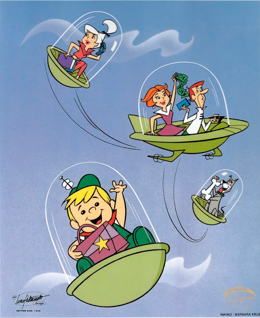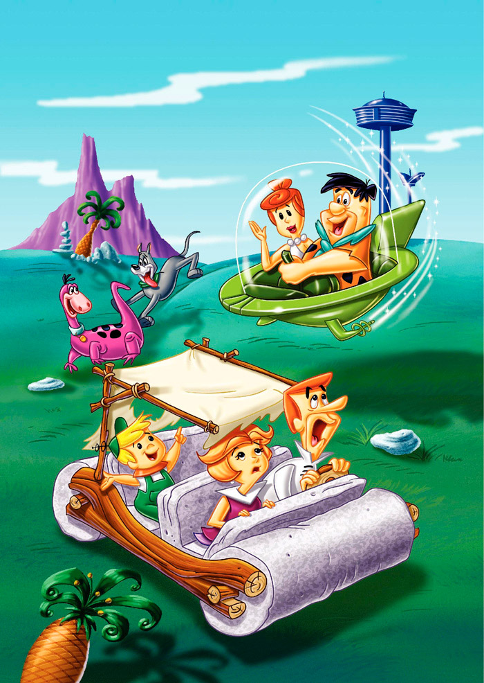 Los Supersónicos, creados por Hanna y Barbera en 1962, son la versión futurista de Los Picapiedra. Y pese a ello, se comportan igual que cualquier familia de clase media noreteamericana. Unos viven en Piedradura, en la Edad de Piedra, y los otros en el siglo XXI, en Orbit City. Sin embargo, ambas son las típicas familias norteamericana de los años 60. (Ver vídeo de la cabecera de "Los Supersónicos")