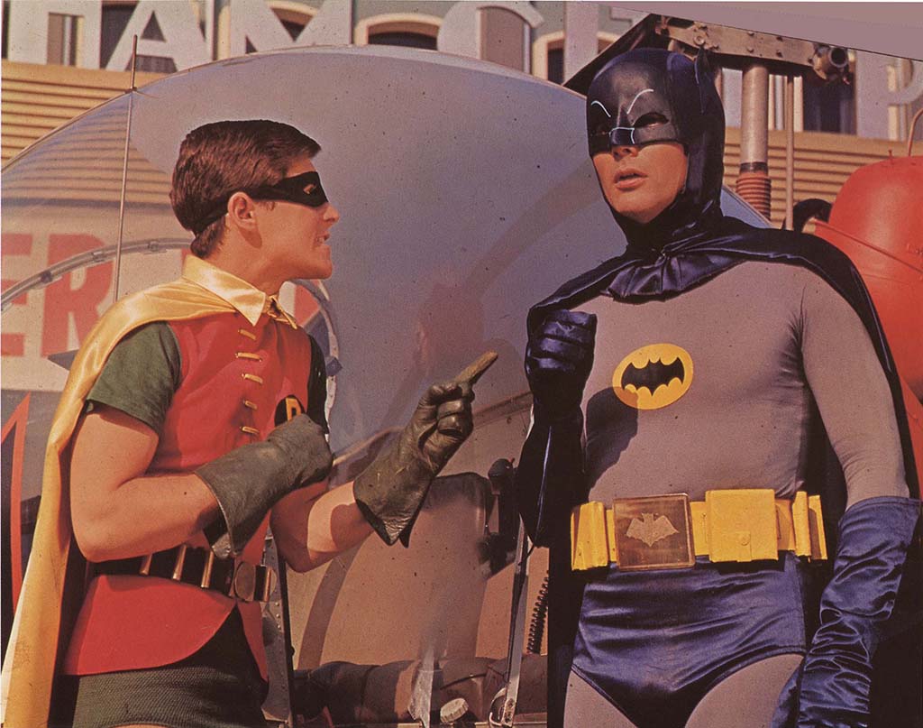 Batman fue un fenómeno pop que influyó en el cine y la música pop como ninguna otra serie televisiva. Tanto en los tebeos de Bob Kane como en la teleserie, Batman y Robin eran dos héroes solares y coloristas, opuestos al caballero oscuro posmoderno. (Ver vídeo del baile de "Batman" en plan Travolta)