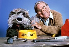 Foto promocional de Fraggle Rock, con Doc y su mascota