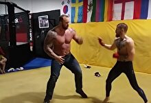 Conor McGregor, campeón de peso pluma de la Fighting Championshp, contra Hafthor Bjornsson, el hombre más fuerte de Europa.
