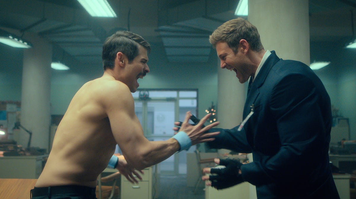 Los actores, por otro lado, están cómodos en los papeles, destacando un Tom Hooper especialmente relajado y, como siempre, al verdadero descubrimiento actoral de The Umbrella Academy, el joven Aidan Gallagher que ha interpretado a Cinco durante los 36 capítulos de la serie. Los villanos responden adecuadamente, siendo digna de aplauso la decisión de Steve Blackman de fichar a actores cómicos pero extraordinariamente dotados para el drama como, en esta ocasión, David Cross, Nick Offerman y Meghn Lullally (ambos de Parks and Recreation) como antagonistas.