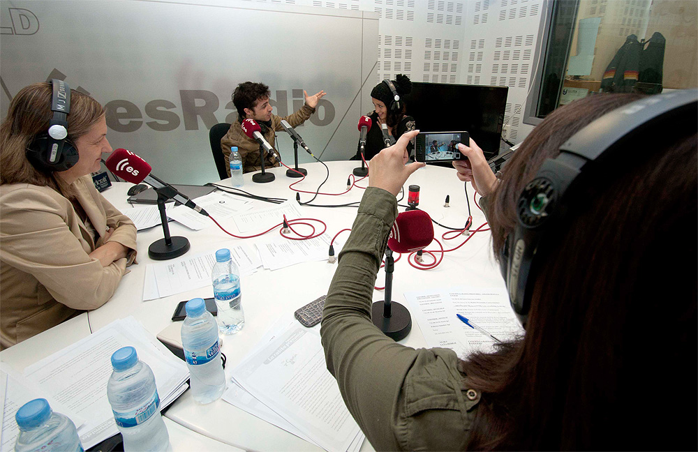 Yésica Sánchez, María José Peláez con los integrantes de La Ratita Presumida. "Los niños salen encantados... Y las niñas quieren ser como ella", señala Ávila.