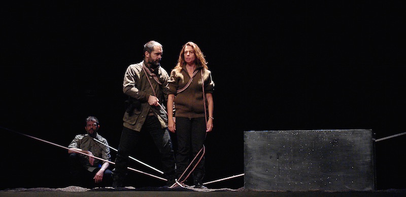 Alex Gadea (Txori/Mikel) interpreta al más joven de los "gudaris", el primero que expresa fervorosamente sus ideales, y el que antes exhibe sus conflictos. Le acompaña una veterana Lola Baldrich (Mayte), que tapa sus dudas con soflamas independentistas. El terrorista curtido en la cárcel es José Luis Patiño (Josu) cuyo odio y fanatismo le hace dudar de sus propios compañeros. Pablo Rivero Madriñán (Xabier) es el líder del comando, que repite sistemáticamente las palabras de la organización, de manera grandilocuente. Y Rafael Ortiz (José) es el que consigue liberarse de la cuerda de la ideología, la que le obligaba a perpetrar el atentado. Y, mientras, los actos se acompasan por el ritmo de la txalaparta, que percute la conciencia de los terroristas.
