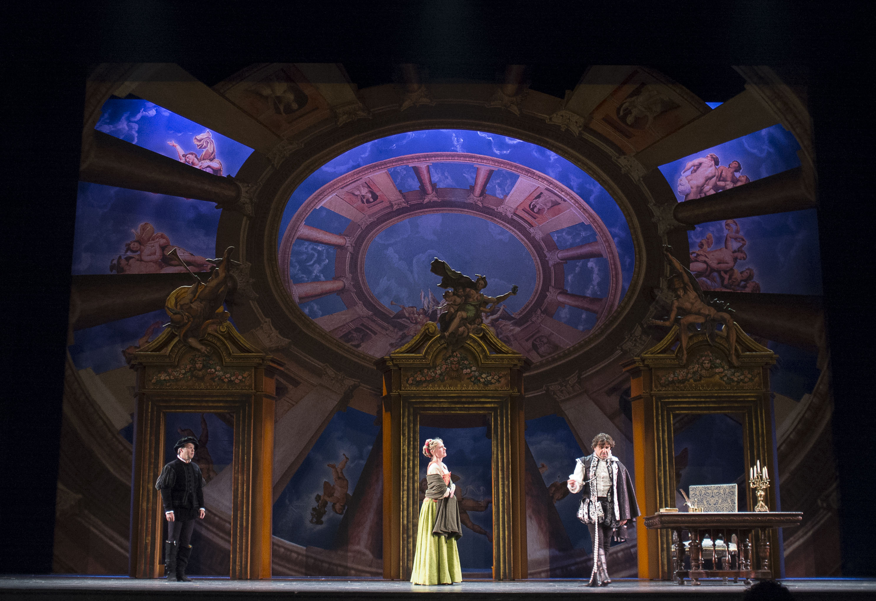 Repuesta por primera vez desde hace más de 130 años, con música del siempre gozoso Francisco Asenjo Barbieri y texto de Luis Olona, se trata de una amable intriga ambientada en la ciudad italiana. Condes, gondoleros y cortesanos se enredan en lujurias y amores en el siglo XVI. Hasta aquí, el interés de la propuesta se mantiene en un nivel aceptable. Pero aumenta si añadimos una licencia, casi un juego narrativo: la función se va a retransmitir por televisión, en cualquier momento puede interrumpirse -cosas del directo- para repetir tomas o dar indicaciones al público. Naturalmente, todo es parte del espectáculo. Pero esta simple idea permite tomar distancia irónica de un libreto demasiado ingenuo, a la vez que posibilita que el personal técnico pueda mover la escenografía a su antojo y, lo mejor de todo, ofrecer tronchantes escenas a cargo del regidor, Pepín Tre ("Ahora vienen todos con sus teléfonos móviles. Antes, cuando no lo eran, casi nadie se los traía).