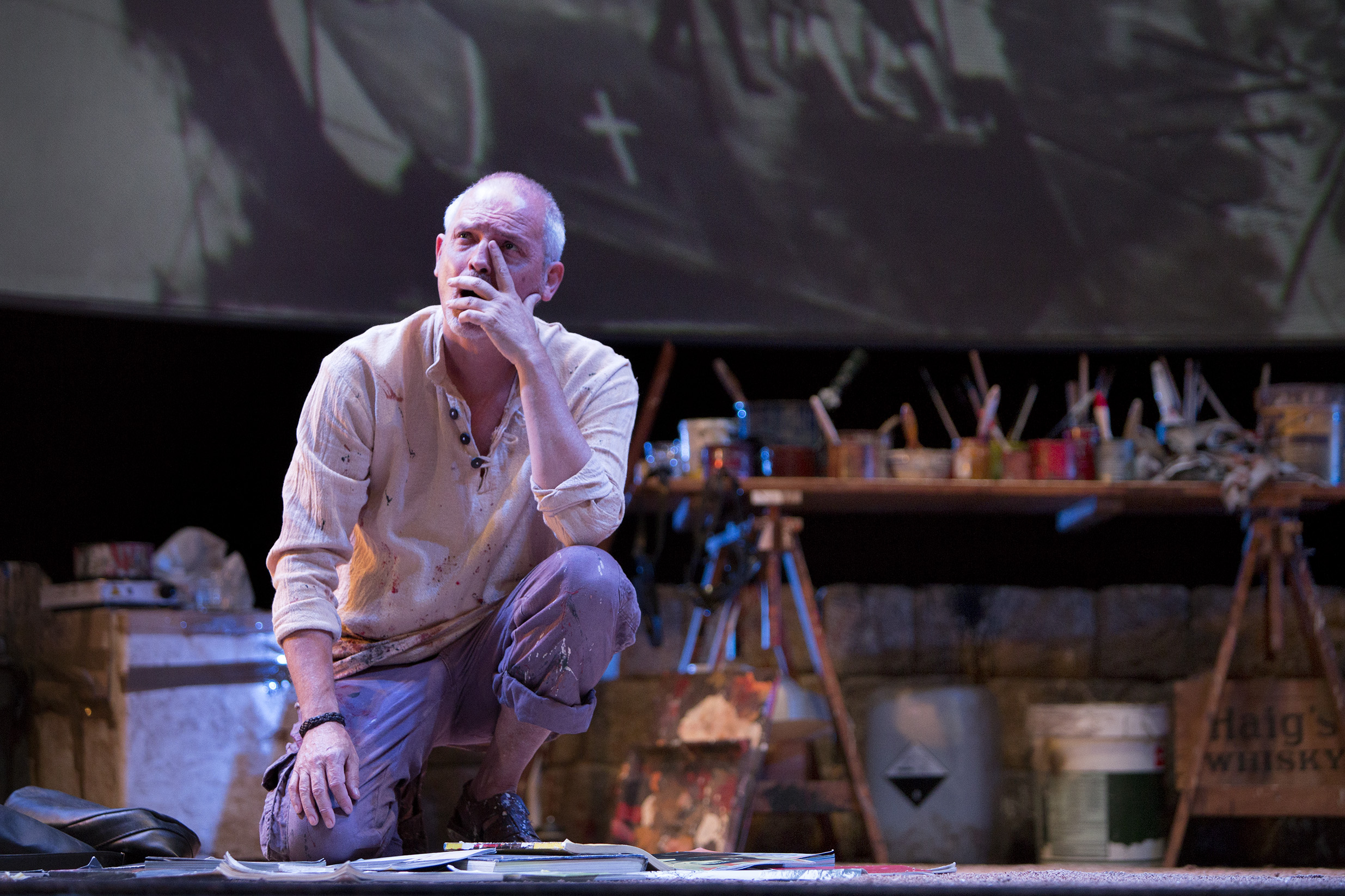 Una suerte de Guernica ocupa buena parte del escenario, para recordarnos el horror de la guerra. Y enmarca los pensamientos de los dos protagonistas: el fotógrafo Faulques (Jordi Rebellón) y su retratado Ivo Markovic (Alberto Jiménez). Testigo y protagonista de la guerra, en la que están inmersos. Convulsión exterior pero también interior, porque parece no tener fin la maldad humana. Ante esa tesitura, cabe la duda, el desconcierto, el miedo, y todos y cada uno de los sentimientos que se ponen encima de las tablas.