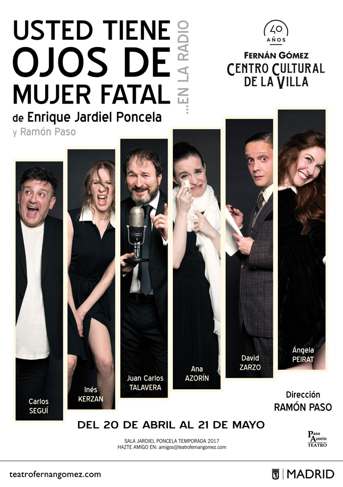 Hay situaciones grotescas muy bien insertadas entra ambas tramas, muestra de lo muy ensayada que tienen este Usted tiene ojos de mujer fatal... en la radio, que se representó tiempo atrás en la escena independiente, pasó por el Teatro Lara, y ahora ha terminado en el Centro Cultural de la Villa, ahora Fernán Gómez. Se da, además, la circunstancia de que esta sala municipal, que cumple 40 años, lleva a las tablas una obra de Jardiel Poncela, en la sala Jardiel Poncela. Un homenaje a una obra muy divertida, que convierte a esta nueva vuelta de tuerca en digna heredera del texto original.