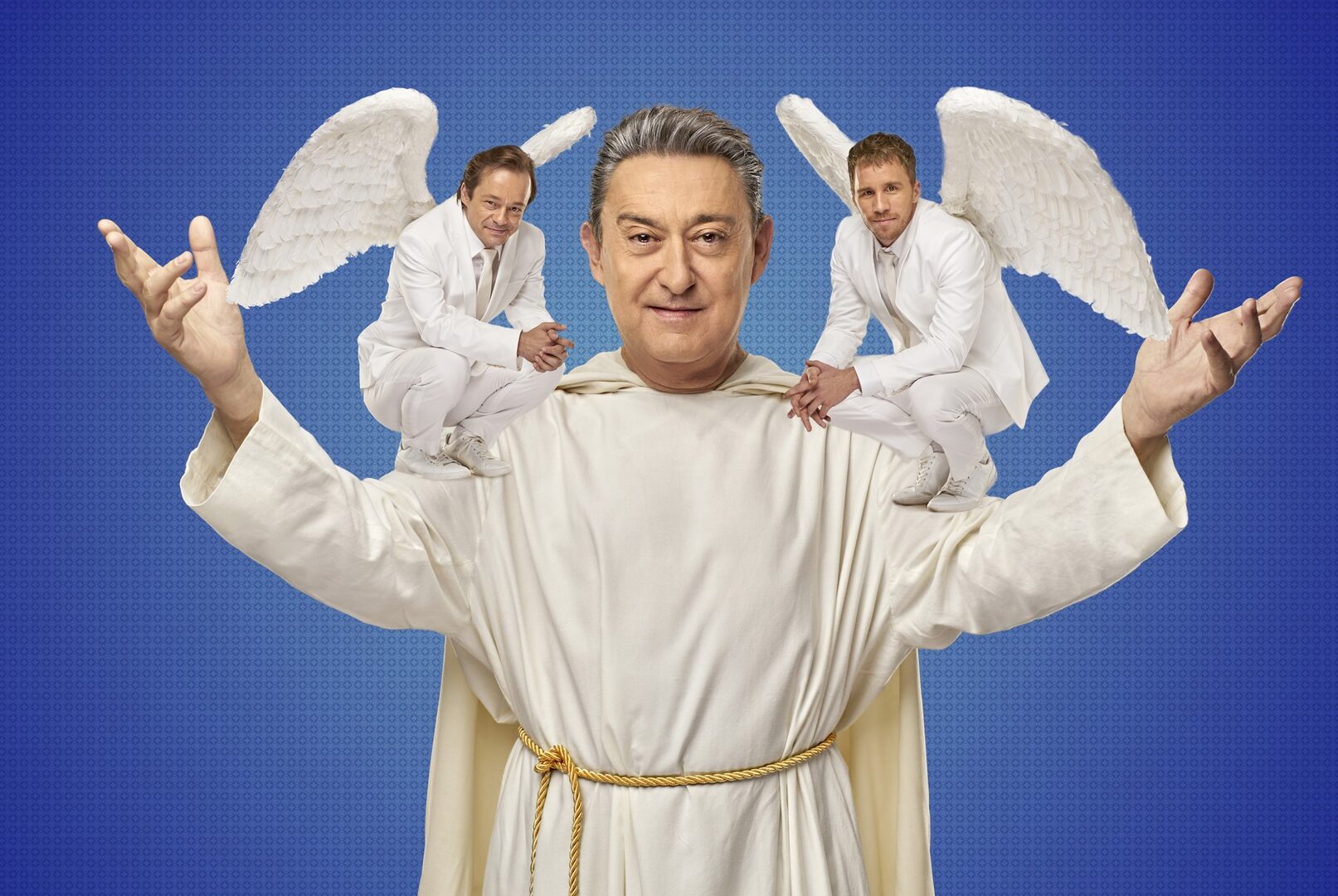 A pesar de estar acompañado en escena por sus dos particulares arcángeles Gabriel y Miguel, interpretados por Chema Rodríguez-Calderón (La Katarsis del tomatazo) y Bernabé Fernández (Águila Roja, El ministerio del tiempo), se puede hablar casi de un monólogo de Mariano Peña (Los Serrano, Aída o Priscilla, Reina del Desierto). El actor, como si fuera el típico amigo que acapara cualquier encuentro y obnubila a los presentes contando anécdotas, se enfrenta con éxito a este difícil maridaje de humor y religión.