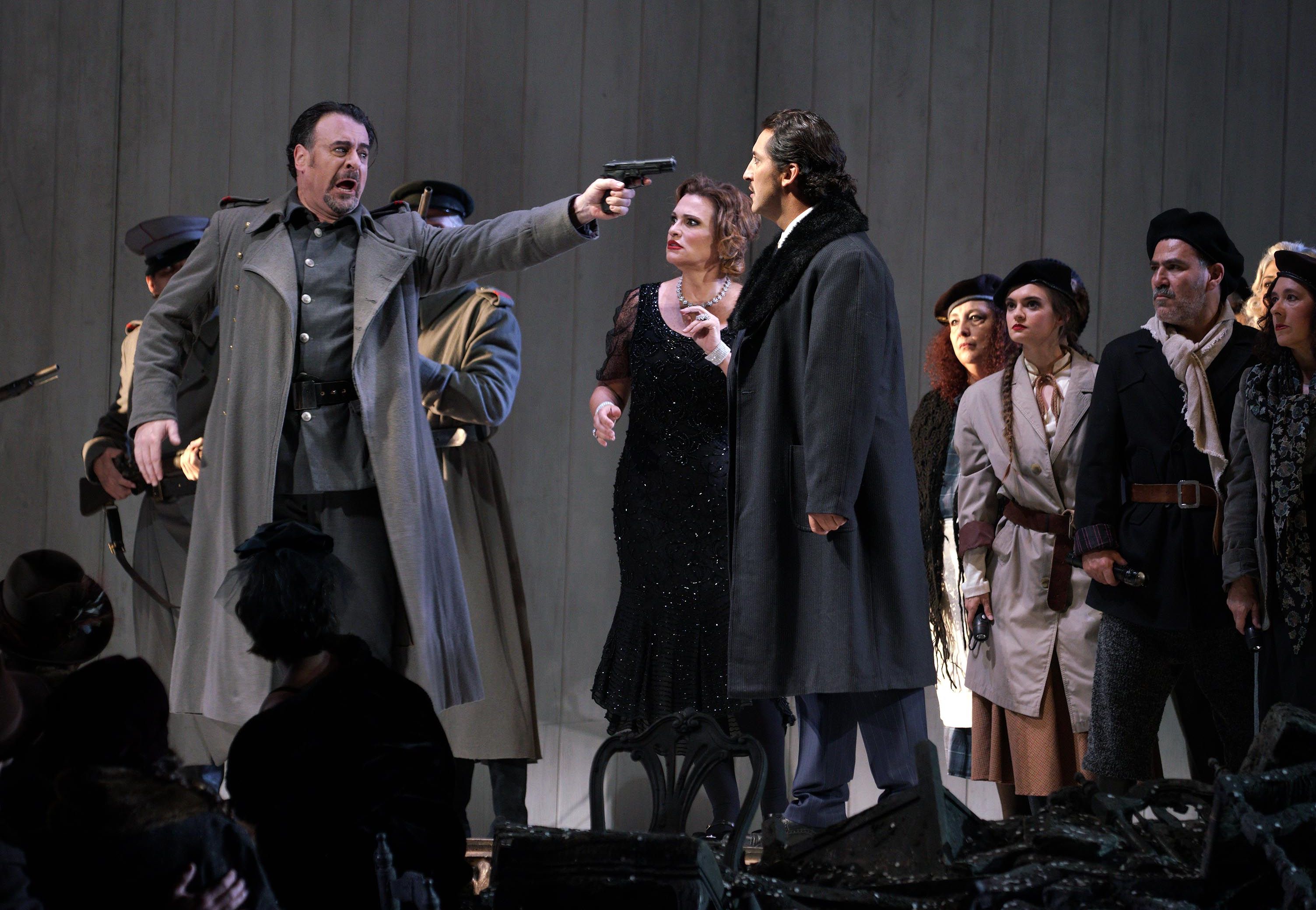 Son aspectos menores que no impiden disfrutar la obra. El espectador benévolo con los chirriantes detalles pudo disfrutar en el estreno de una excelsa Ainhoa Arteta (papel que encarnarán en las sucesivas funciones Maite Alberola y Rocío Ignacio), con su delicado vibrato y generosa duración de notas finales. Vestuario e iluminación parecen centrados en su protagonismo y lucimiento —en ocasiones parece un recital de la soprano, y es inevitable recordar su sonoro éxito y repercusión cantando "De España vengo" hace un año—. Pero a su lado encontramos a Carlos Álvarez plantando cara y llevándose las mayores ovaciones —y un ramo de flores suicida arrojado desde el tercer piso— como el comisario Pedro, nueva incorporación para su galería de personajes atormentados con un atisbo de vulnerabilidad. Emociona ver a semejante varón con su voz cavernosa entonar la primera romanza ("Y así, soñando, pasó mi vida / con una pena en mi alma escondida/ el no encontrar un alma de mujer").