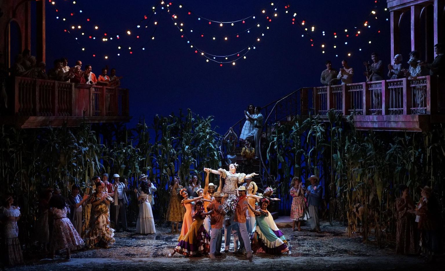 La reposición de esta obra es ya un acontecimiento que merece la atención de cualquier aficionado del teatro lírico. Pero además es reseñable el cuidado que se ha puesto en todos sus aspectos: el esfuerzo por contar con un reparto casi íntegramente latinoamericano, la evocadora escenografía de Carlos Wagner, con 700 cañas de azúcar poblando el escenario -y limitando mucho el espacio y el margen de maniobra para actores y bailarines, hay que decir-, el colorido vestuario, la siempre eficiente dirección musical de Óliver Díaz, que saca todo el partido a una pletórica y compleja partitura de Gonzalo Roig, que combina música tradicional cubana con páginas más tradicionales -romanzas, dúos- en la línea de lo mejor del género.