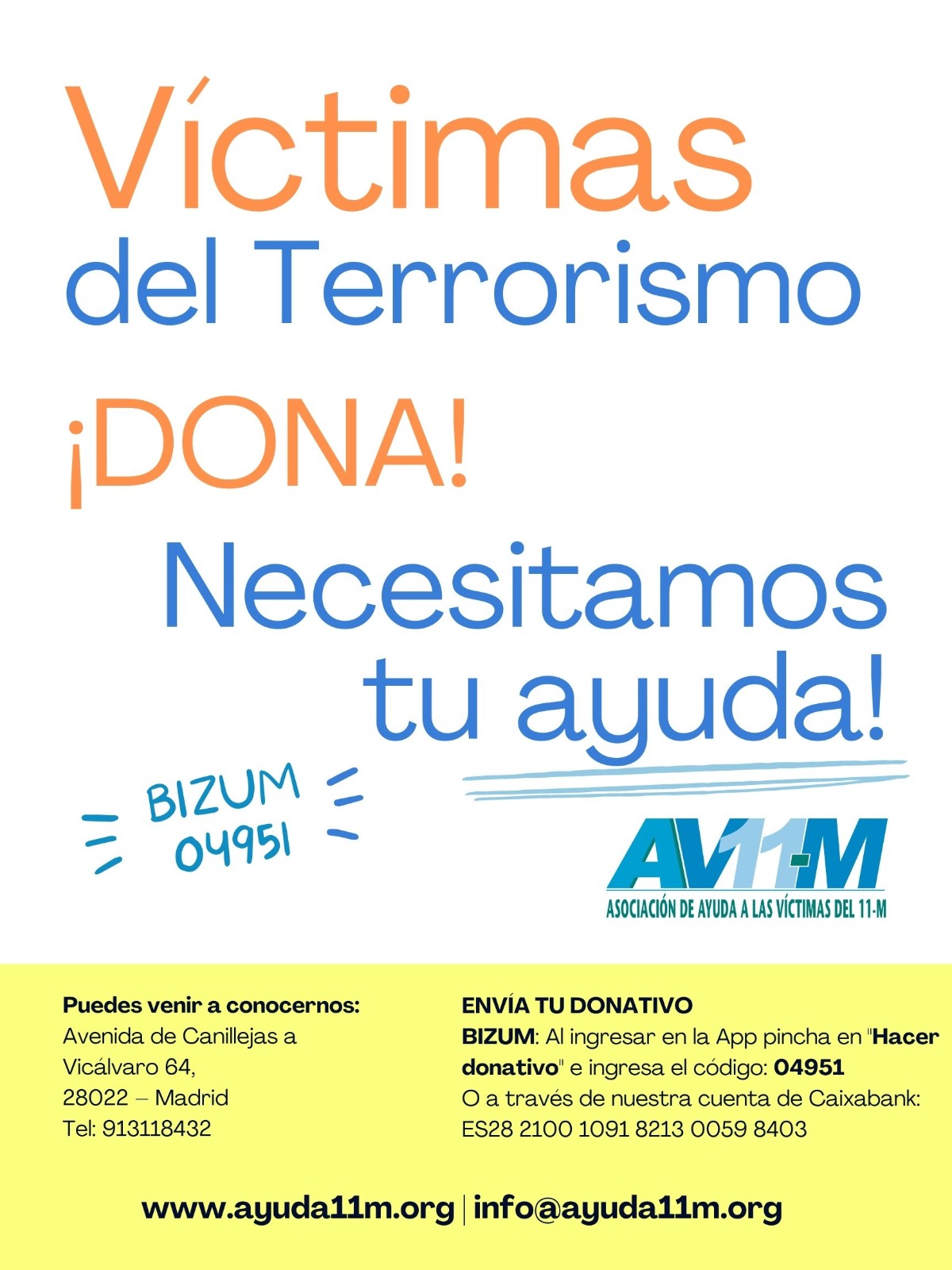 La Asociación de Ayuda a las Víctimas del 11-M sigue necesitando ayuda y colaboración de todos los ciudadanos "para seguir trabajando", y más en estos tiempos. Han emprendido una última batalla legal para impedir que prescriban en 2024 los atentados en los que perdieron la vida 191 personas y cerca de 2.000 resultaron heridas.