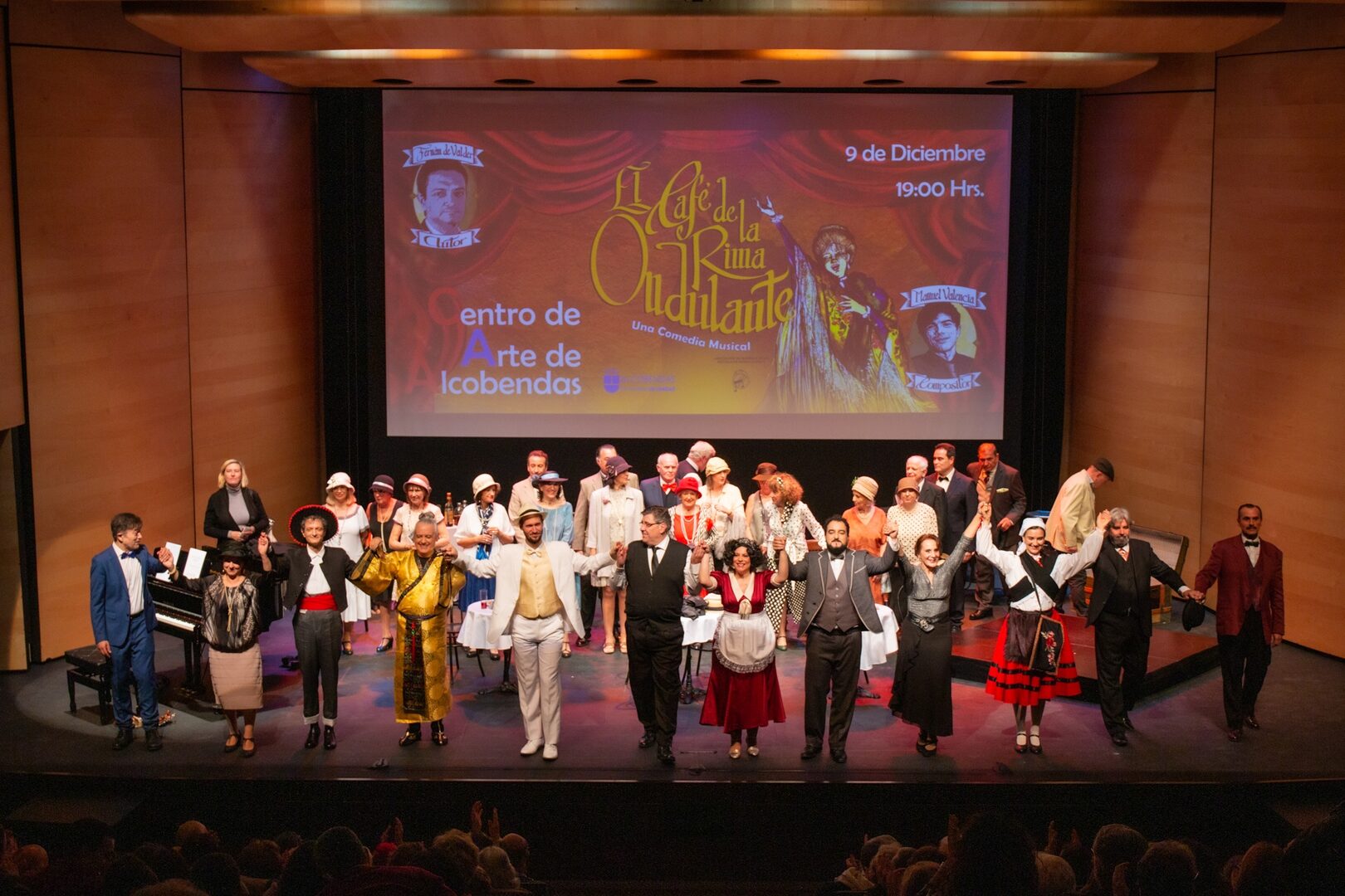 Parece increíble en los tiempos que corren, pero efectivamente se ha estrenado una nueva zarzuela con este curioso título: El café de la rima ondulante. Fernán de Valder (el poeta Alberto González Valderrama, que debuta como autor dramático), firma el libreto y dio vida a uno de los personajes; y el maestro Manuel Valencia, una institución en el mundo de la música, firmó y ejecutó la partitura en este estreno, verdaderamente mundial, que ha tenido lugar , el pasado 9 de diciembre, en el precioso Centro del Arte de la localidad madrileña de Alcobendas. Más concretamente en el Auditorio Paco de Lucía, albergado en el mismo.