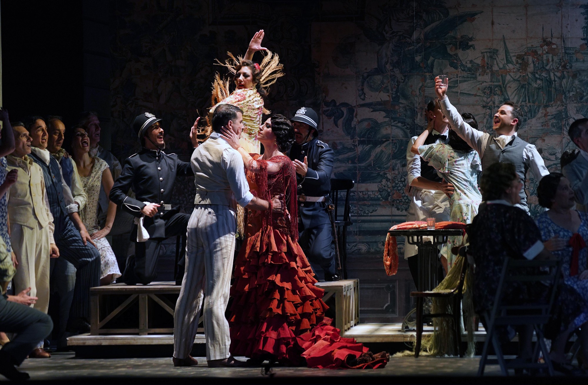 La historia de los "celos mal reprimidos" (título alternativo de la obra), como ya se ha dicho, chirría en algunos aspectos que cuesta pasar por alto: es mérito del Julián de Borja Quiza que, si no llegamos a empatizar con él, al menos no nos resulte odioso. Su resonante y cada vez más potente voz aporta el desgarro que su canción requiere. Frente a él, la Susana de Carmen Romeu, con un casticismo algo engolado -ella luce mucho más en el prólogo- para un personaje poco agradecido por la falta que desarrollo que tiene. Alrededor de ellos otros tantos excelentemente escogidos: el don Hilarión de Antonio Comas es juvenil y sofisticado -más cerca del Maurice Chevalier de Gigi que del don Diego de El sí de las niñas-, un aire nuevo que sienta bien al personaje. Milagros Martín es una conmovedora Señá Rita, con la majestad que ella confiere a cualquier personaje, y es magnífica también la intervención de la cantaora Sara Salado. Hay un buen trabajo actoral de Rafa Castejón -aunque vocalmente no iguale a sus compañeros- y de Gurutze Beitia en el vapuleado personaje de la tía Antonia, que a pesar de su moral ambigua es el que más merece una relectura.