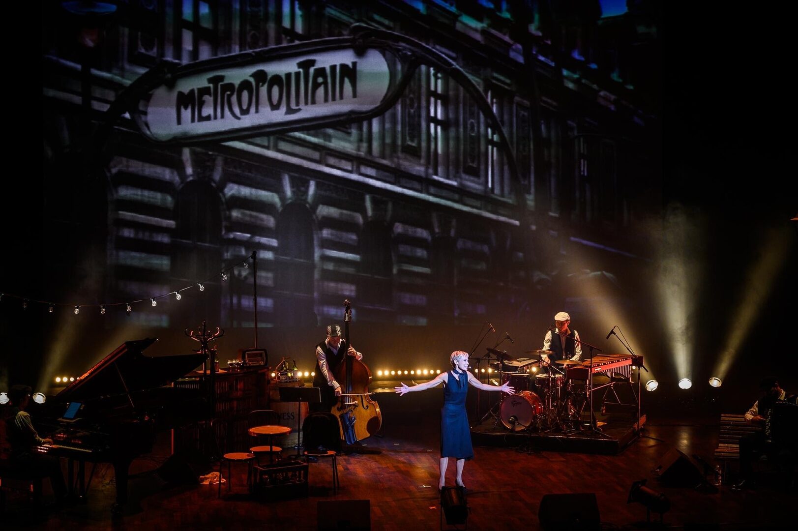 Lermitte no actúa sola; cuenta con el respaldo de cuatro músicos de primer nivel al piano, acordeón, contrabajo y percusión, elementos indispensables para recrear el sonido auténtico de clásicos como La Vie en rose o Non, je ne regrette rien.