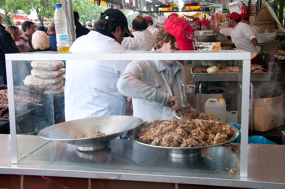 Los dos platos más típicos de la fiesta de San Isidro, gallinejas y entresijos, de lo más solicitado en los puestos y restaurantes