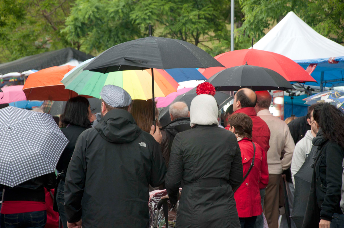 Los paraguas no tardaron mucho en aparecer ya que a media mañana comenzó a llover en la pradera de San Isidro