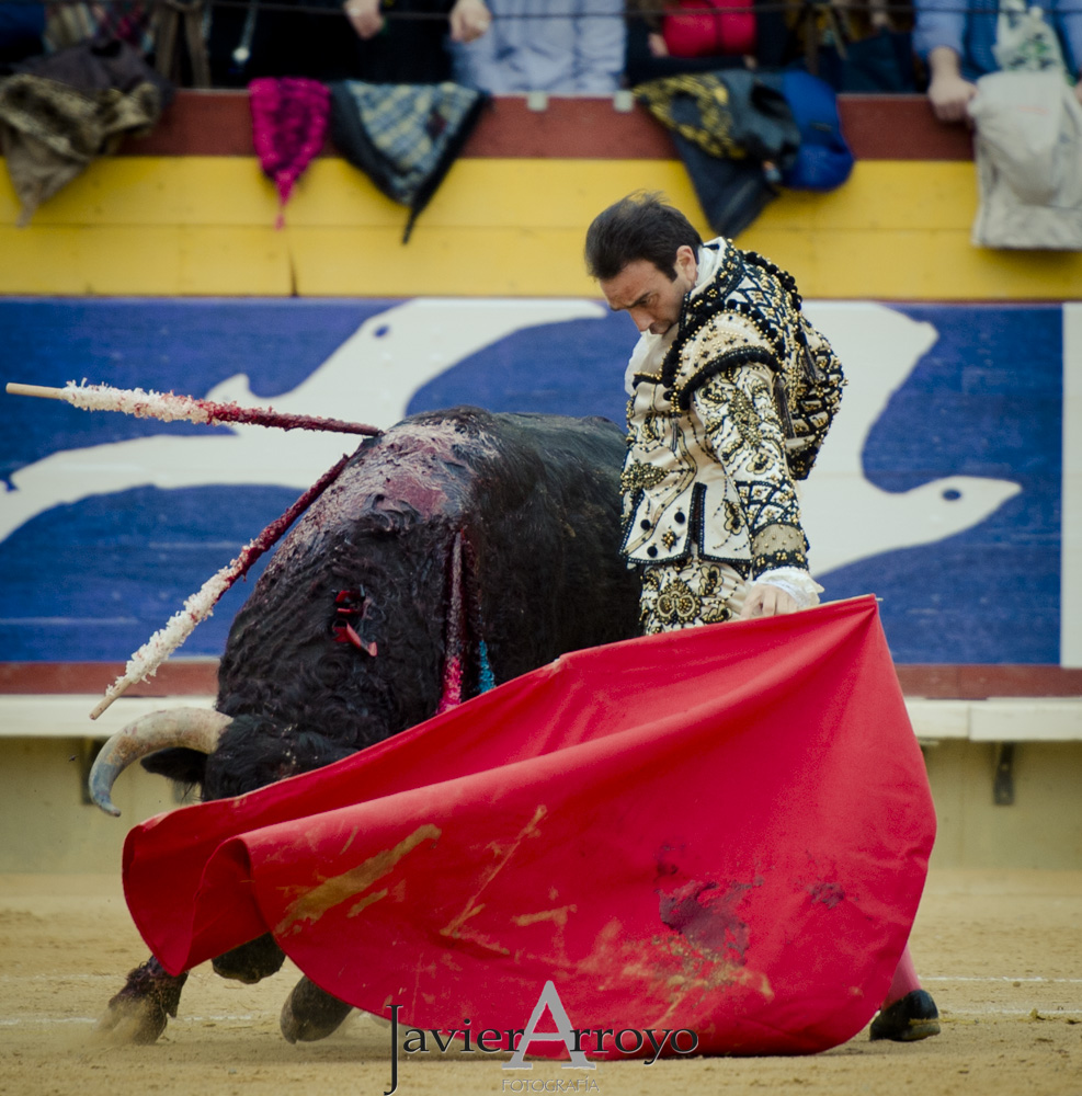 Enrique Ponce, dirigiendo la embestida del astado con la espada y la muleta.