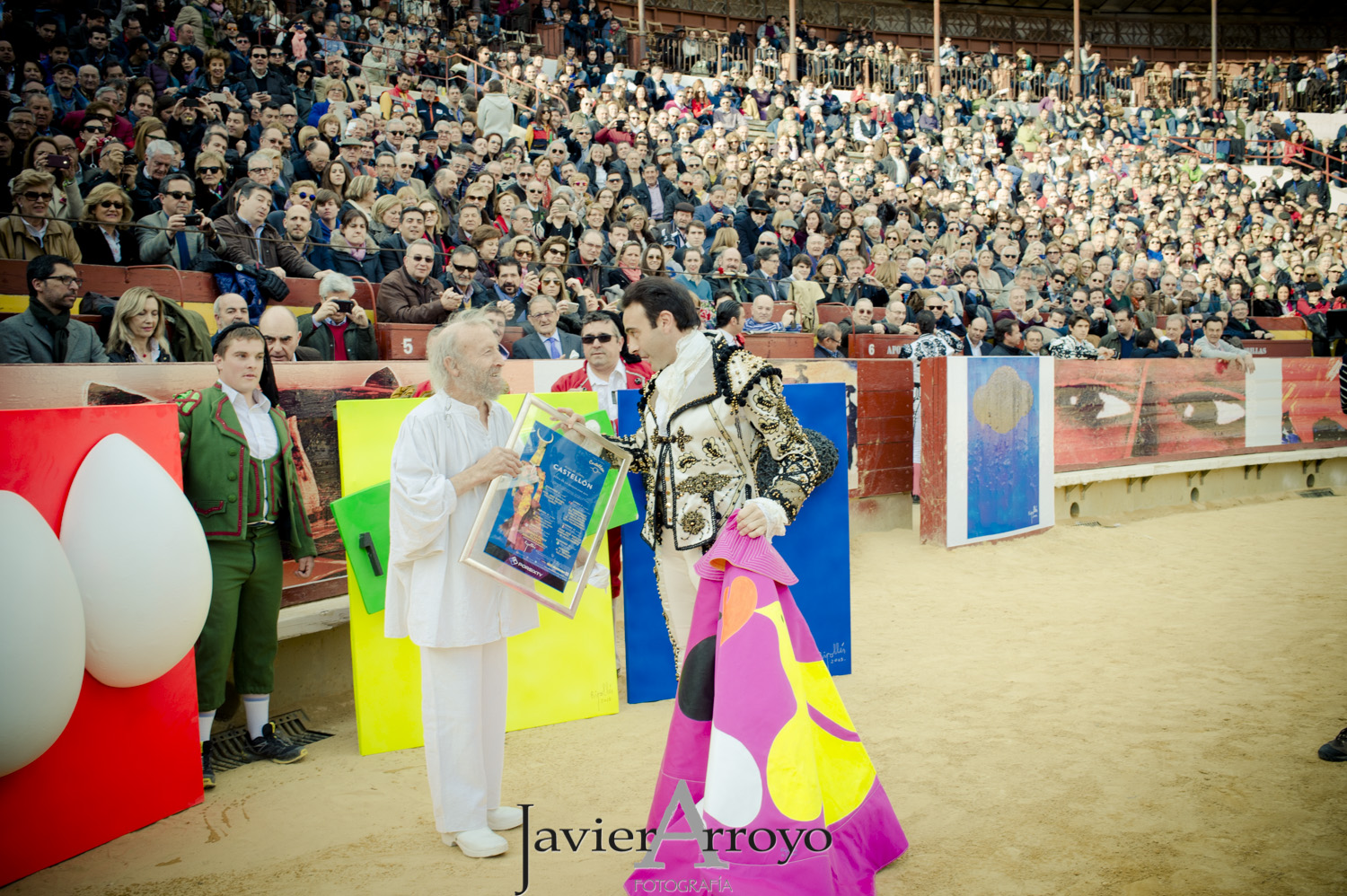 El artista Ripollés decoró la Plaza de Castellón y entregó un cuadro conmemorativo a Enrique Ponce con el cartel de la Feria de la Magdalena 2015, diseñado por Juan Iranzo.
