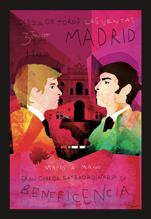 Cartel para la Corrida de Beneficencia de San Isidro 2015. "Mano a mano" entre El Juli y Miguel Ángel Perera.