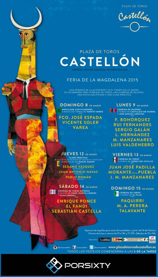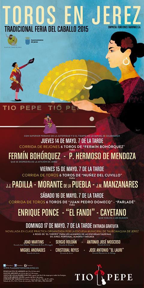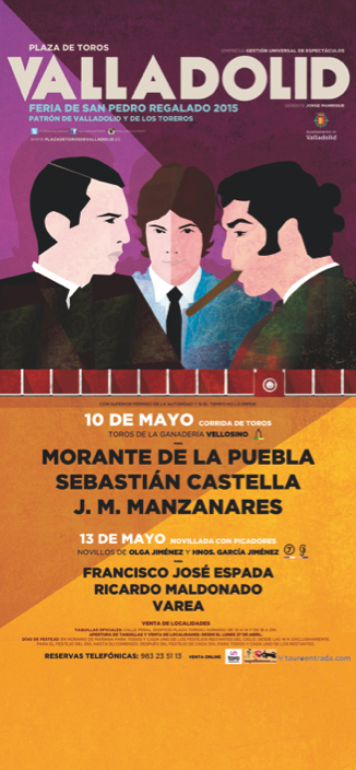 Cartel de la Feria de San Pedro Regalado de Valladolid para 2015. La terna de Morante, Castella y Manzanares encabeza el diseño.