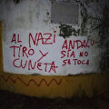Pintadas amenazantes en la finca de Morante de la Puebla. | Twitter/@Santi_ABASCAL Amenazas a Morante de la Puebla por su apoyo a VOX: "Al nazi tiro y cuneta" El torero Morante de la Puebla ha sido uno de los pocos personajes que ha apoyado públicamente a VOX y ya es amenazado por ello.