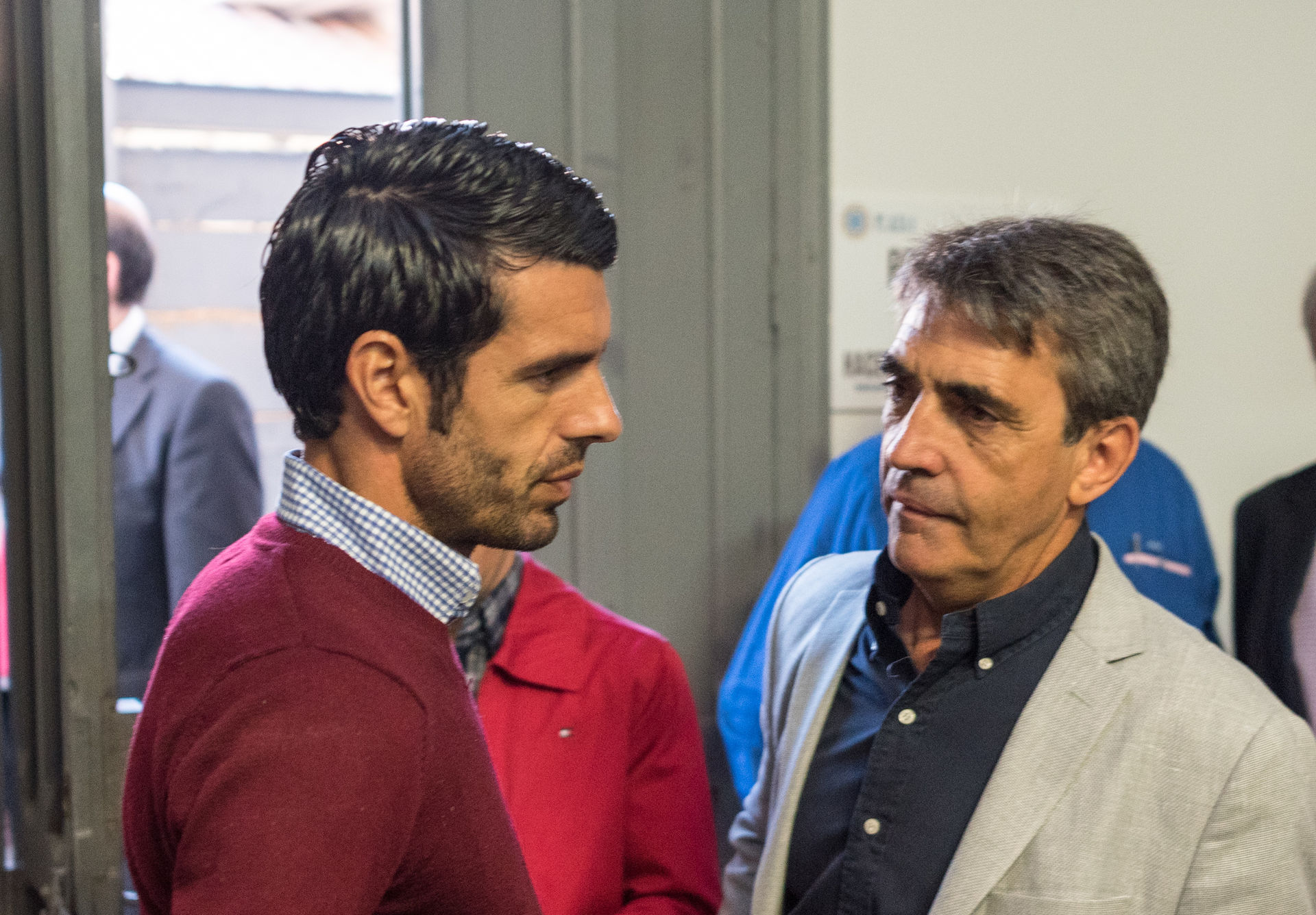 El torero extremeño Emilio de Justo comenta con el ganadero Victorino Martín el resultado del sorteo.