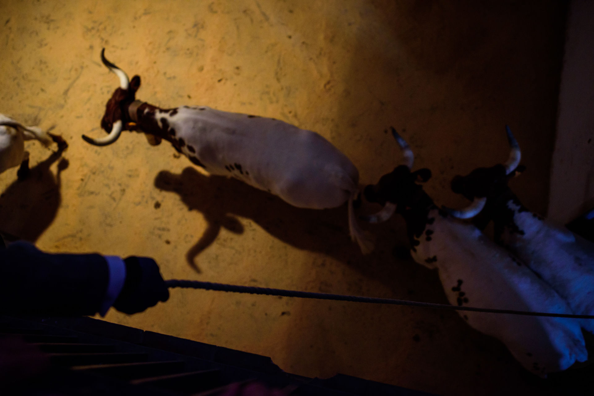 Los cabestros se utilizan para manejar a los toros y evitar peleas. La cuadra de Madrid, comandada por el mayoral de la plaza, Florito, es una de las más efectivas.