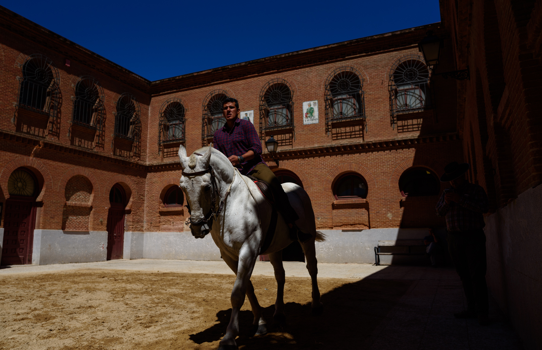Así calientan los caballos de la cuadra de picadores de Las Ventas.
