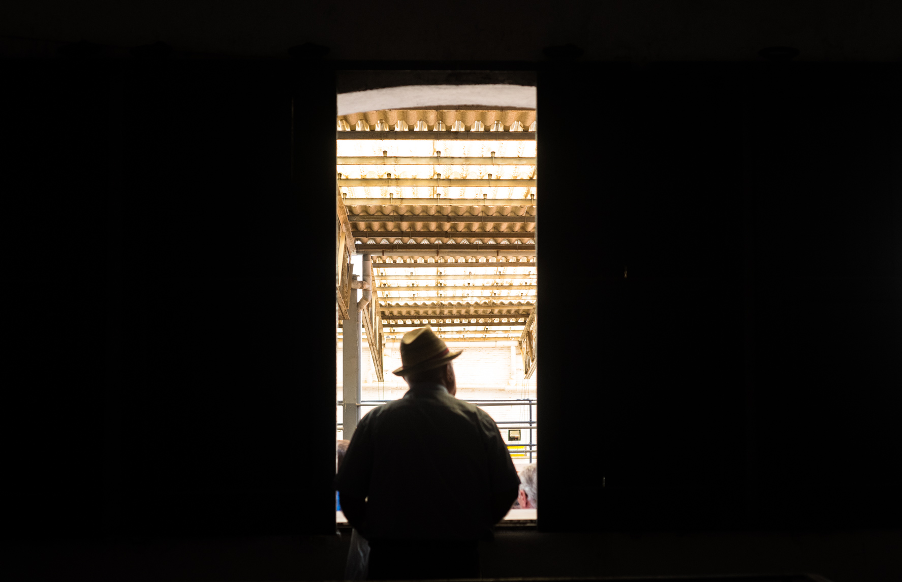 Un aficionado mira los corrales de Las Ventas desde las alturas. En Las Ventas puede haber más de tres corridas de toros a la vez.